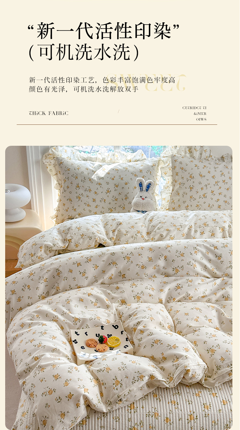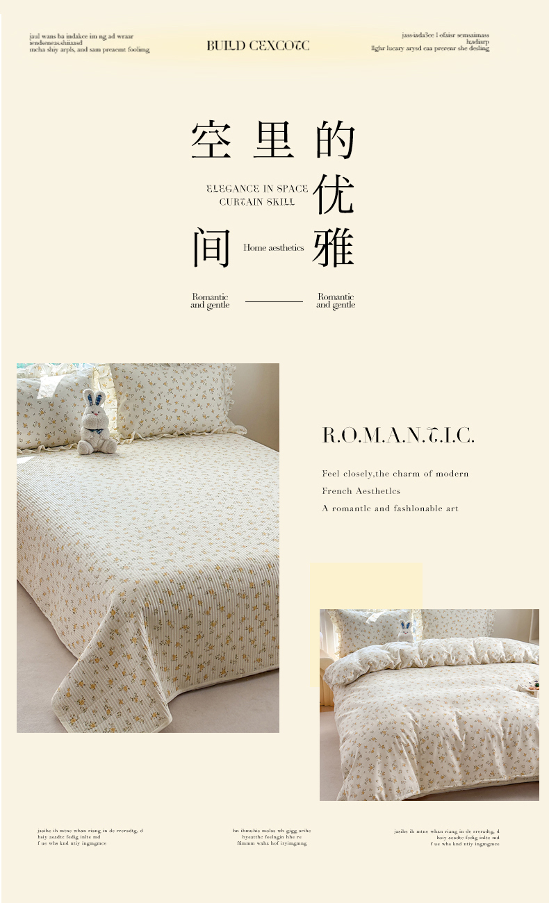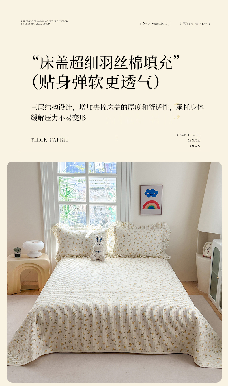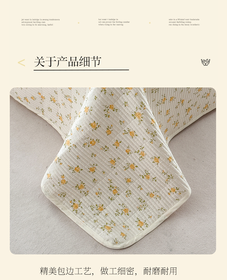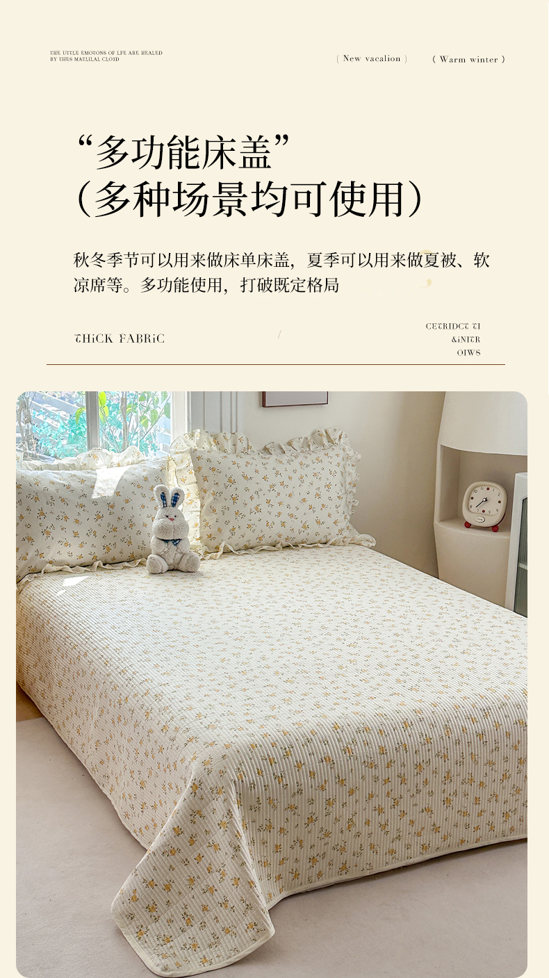 嘉汀兰家居 2025新款13372单面全棉高温砂洗绗缝单床盖,床盖四件套(同款花边被套) 小黄花