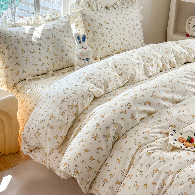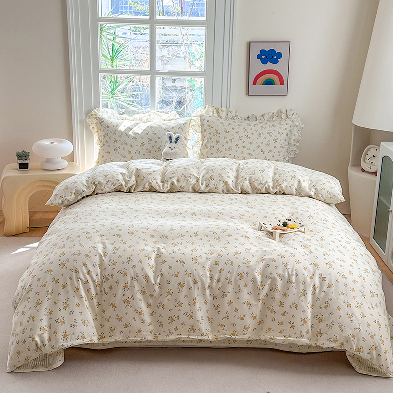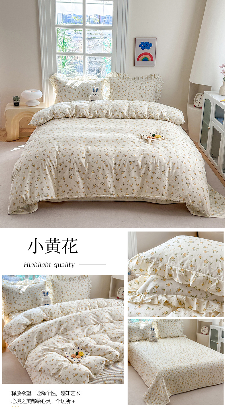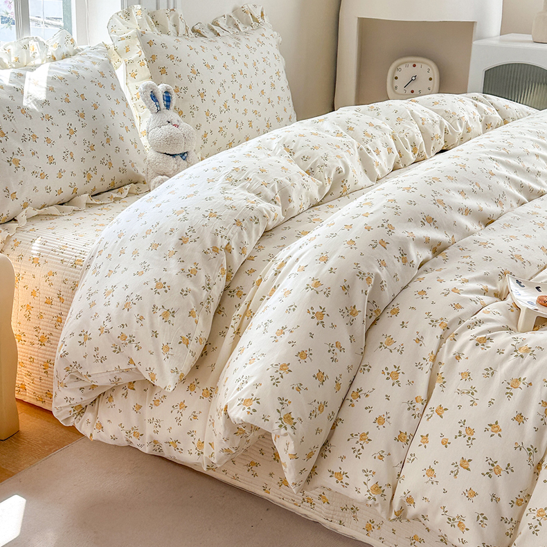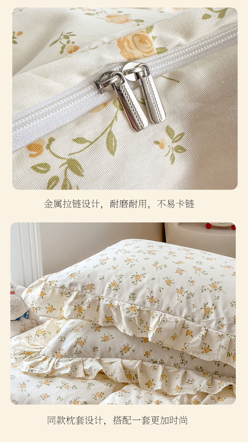 嘉汀兰家居 2025新款13372单面全棉高温砂洗绗缝单床盖,床盖四件套(同款花边被套) 小黄花