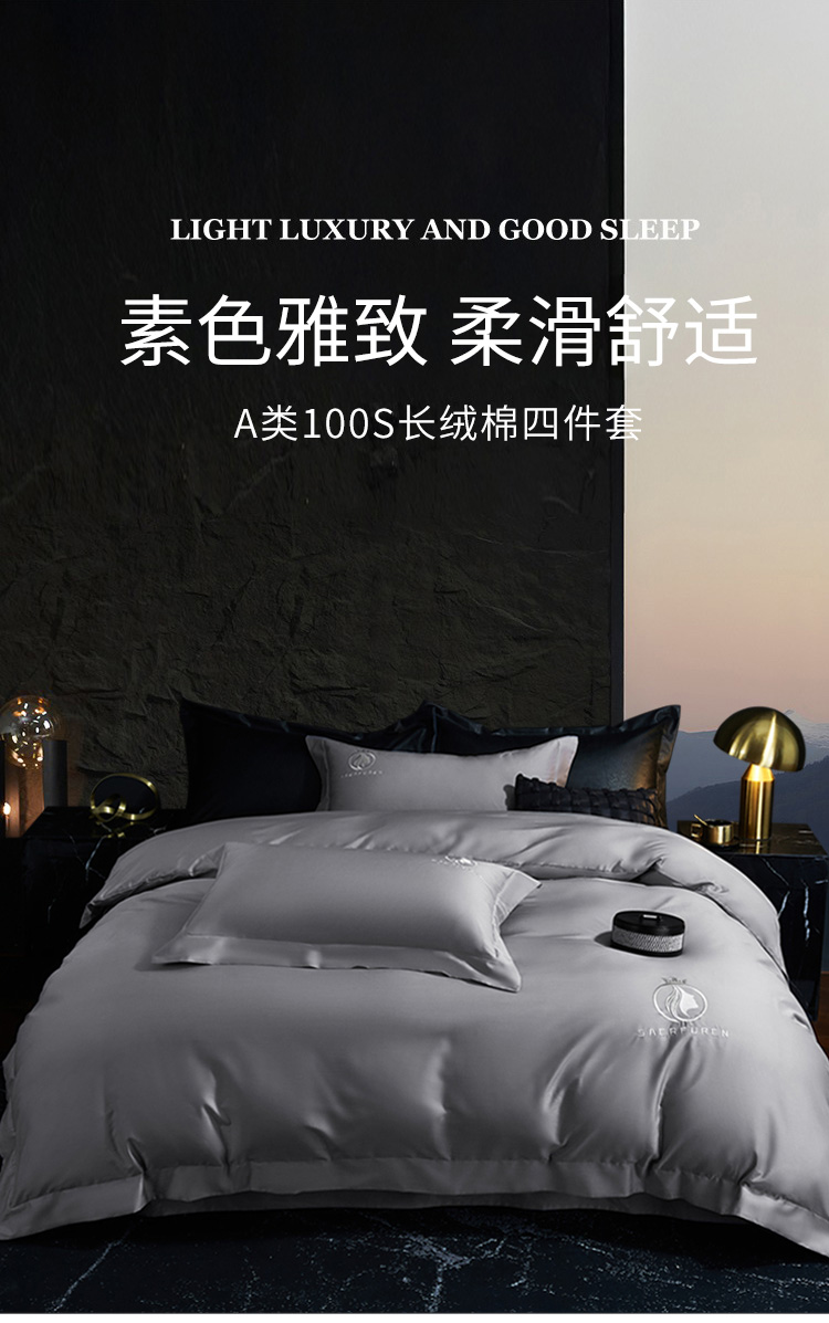 当前位置: 91家纺网 > 商品网购 > 床品套件 > 四件套 > 长绒棉四件套 > 憨豆家纺 2025新款全棉纯棉长绒棉四件套刺绣绣花纯色贡缎床笠款高端礼盒装 萨尔夫人-高级灰