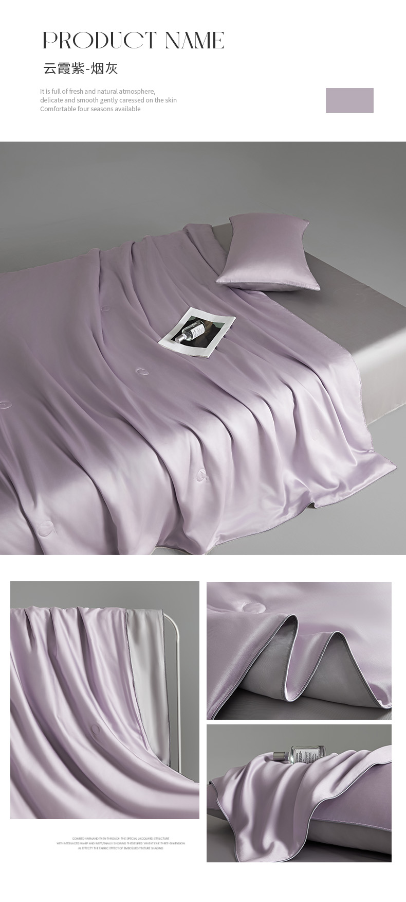 • 91家纺网 家纺一手货源 找家纺 AB家纺2025新品A类莱赛尔双拼50天丝空调夏被四件套 云霞紫-烟灰