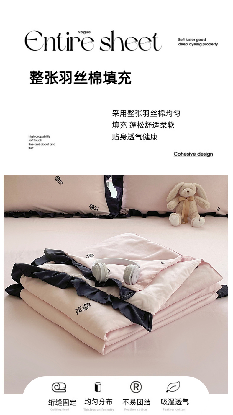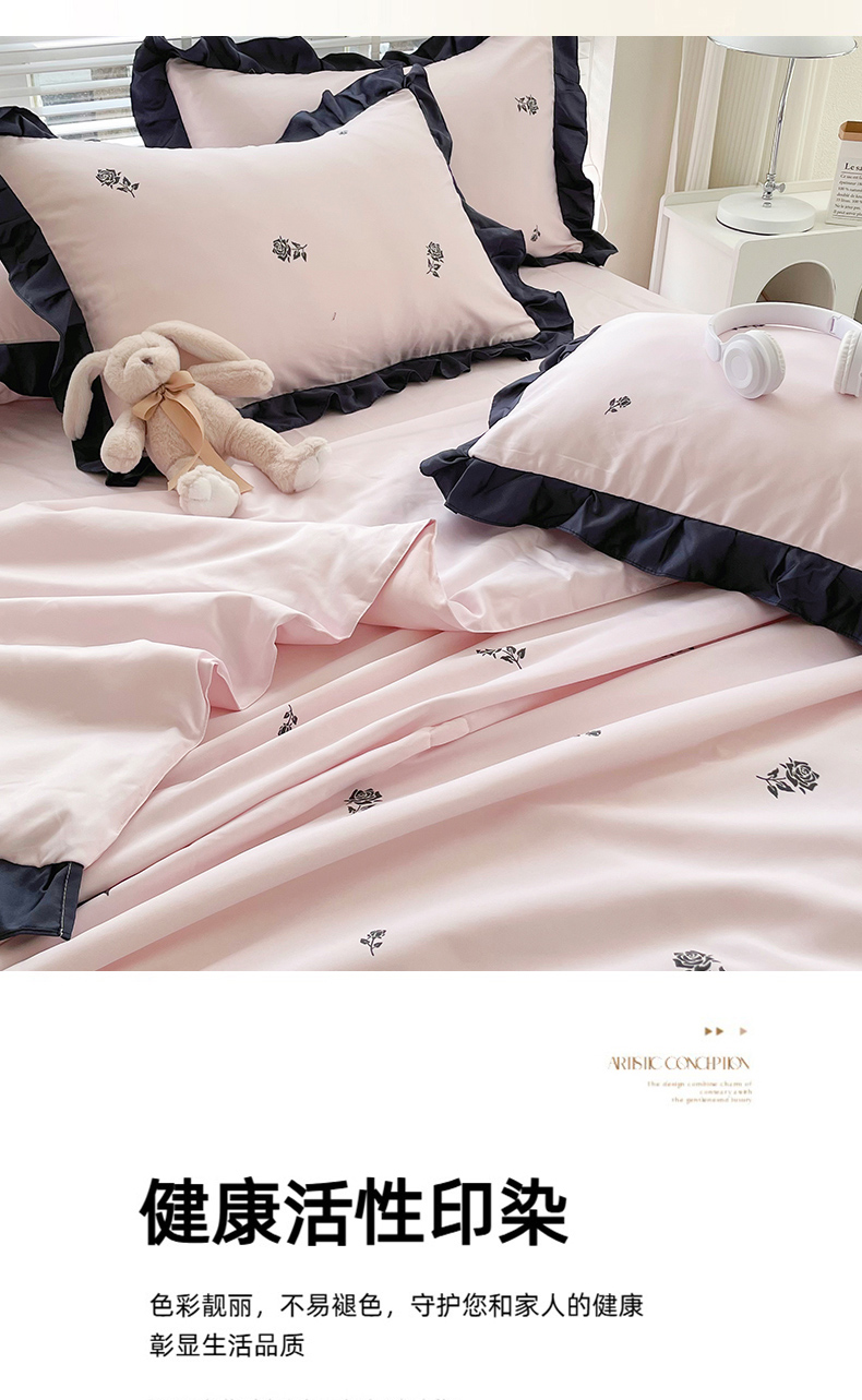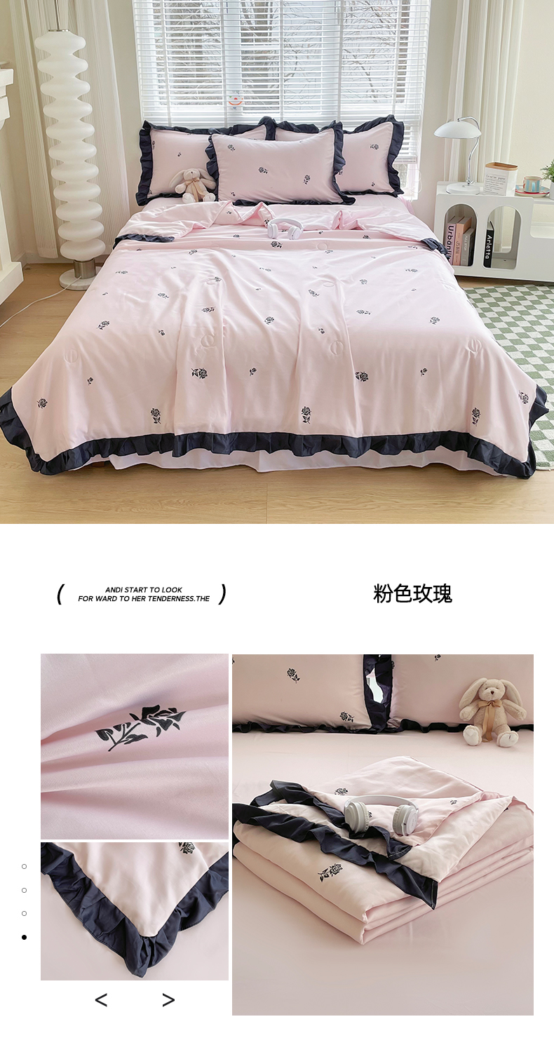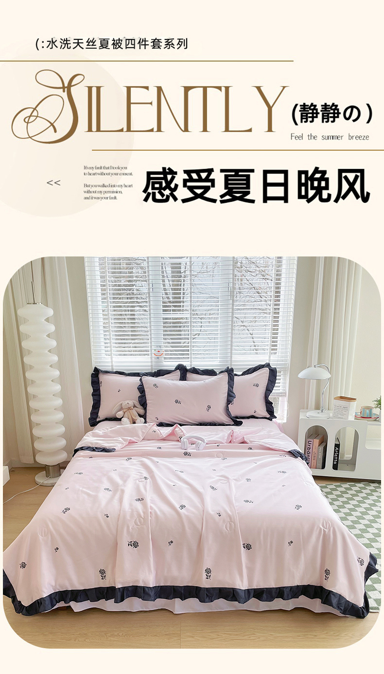 商品名称:绣女坊 2025新款水洗天丝夏被四件套 粉色玫瑰
