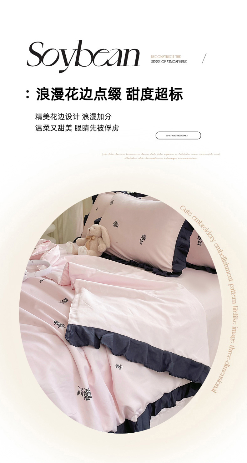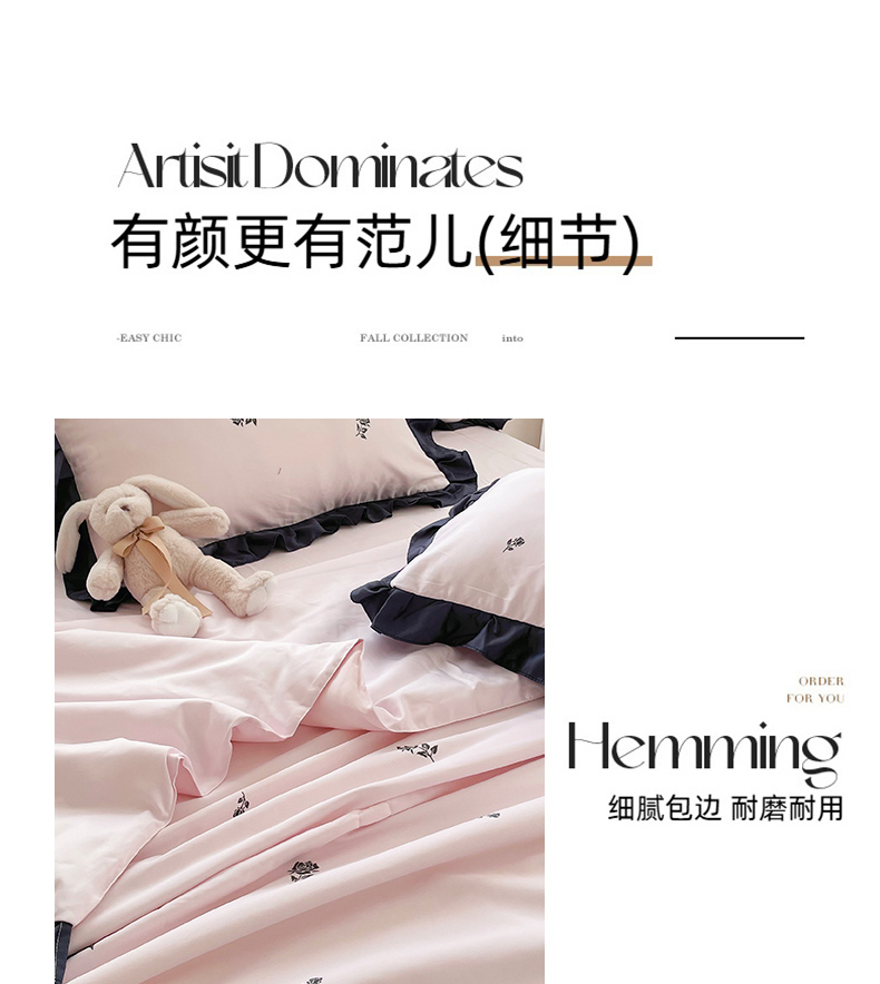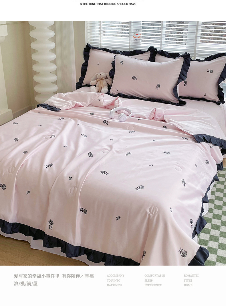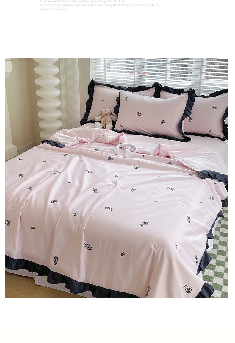 商品名称:绣女坊 2025新款水洗天丝夏被四件套 粉色玫瑰