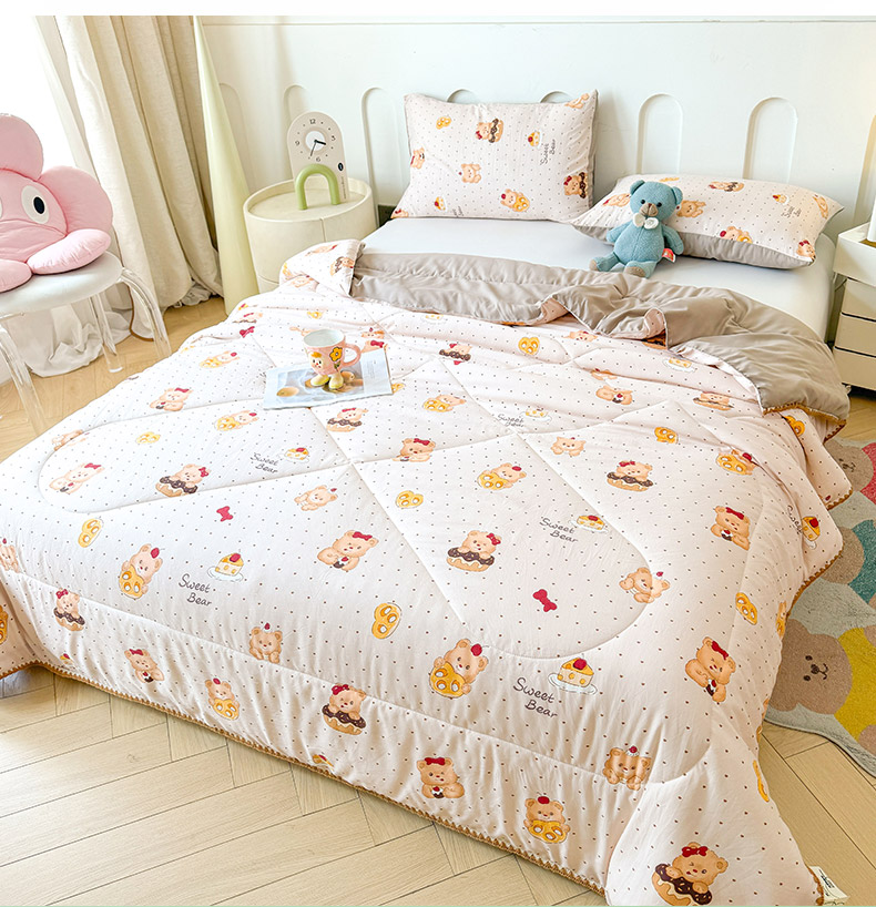 熙宴家纺 2025新款A类水洗双层纱100%新疆棉花印花夏被空调被夏凉被 小熊蛋糕