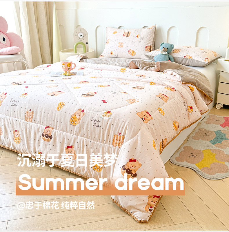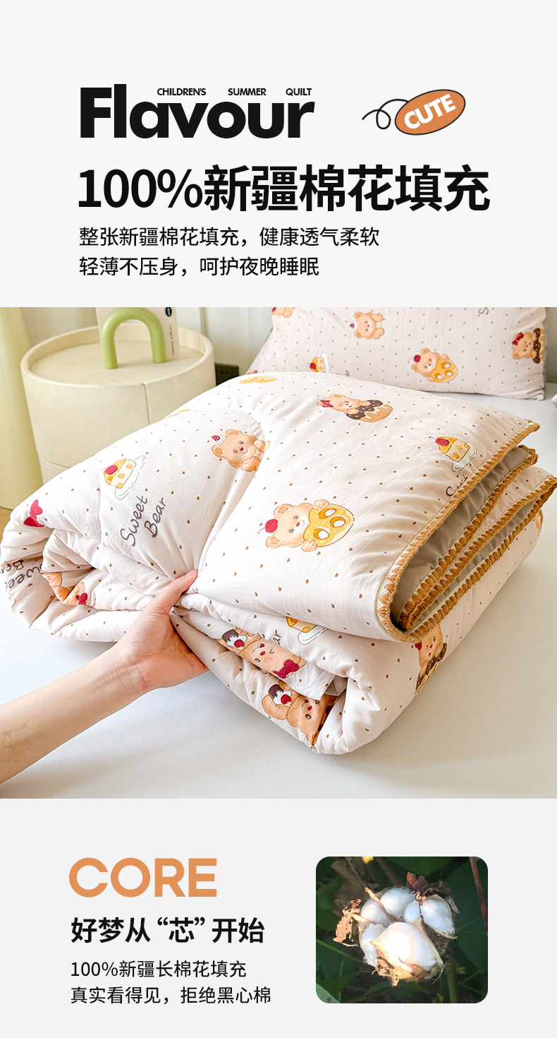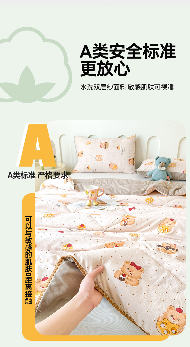 商品名称:熙宴家纺 2025新款A类水洗双层纱100%新疆棉花印花夏被空调被夏凉被 小熊蛋糕