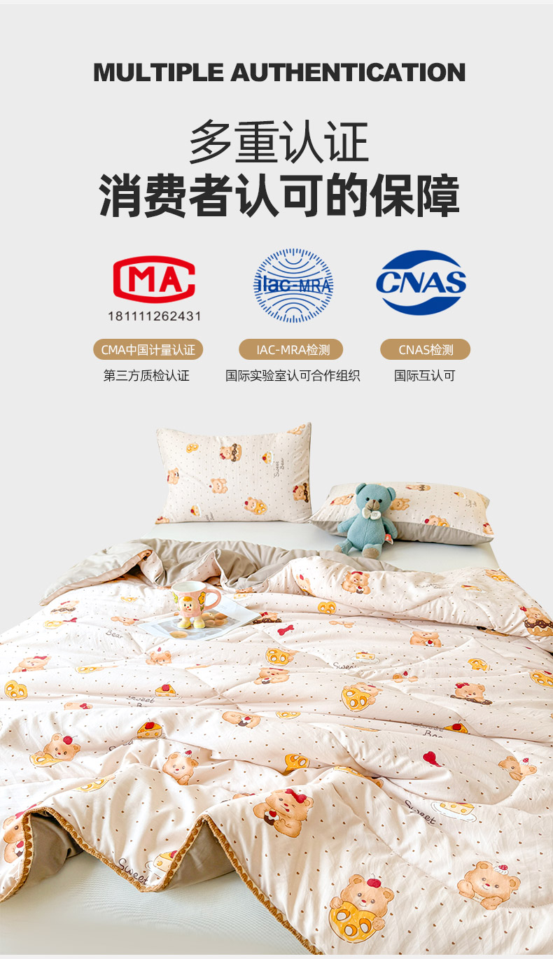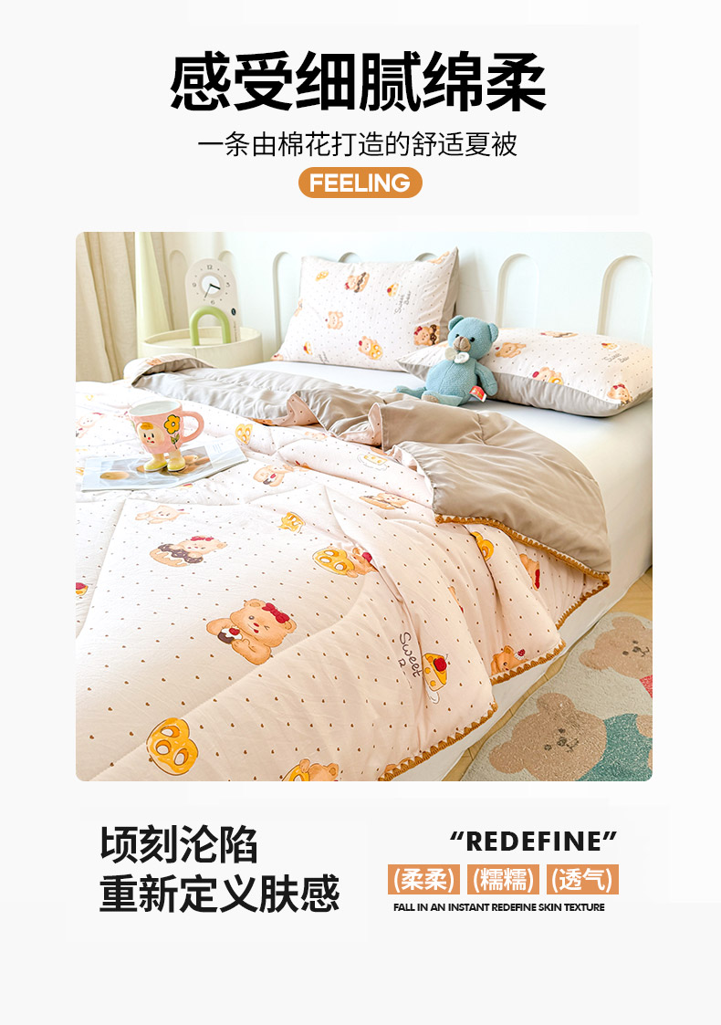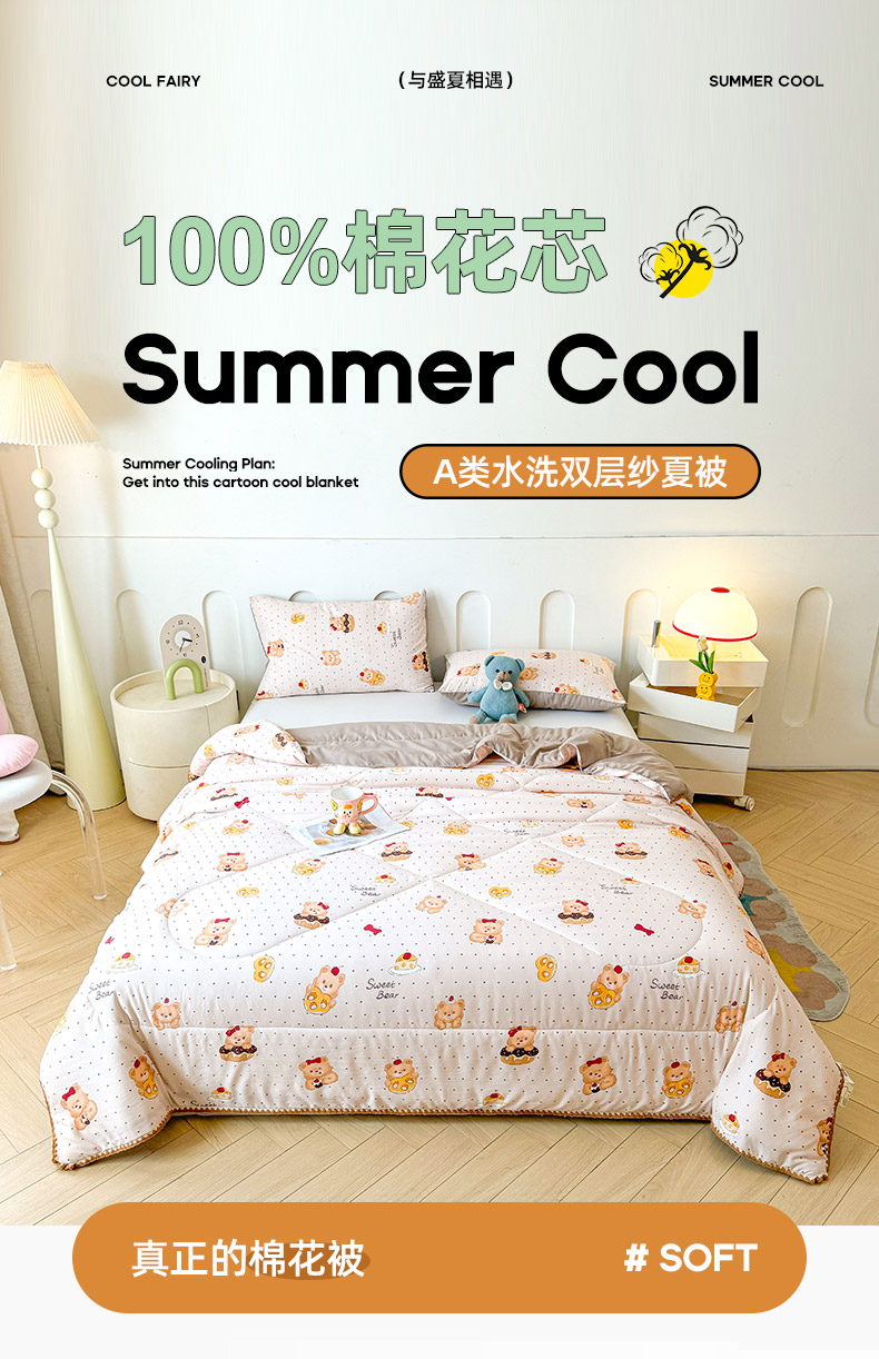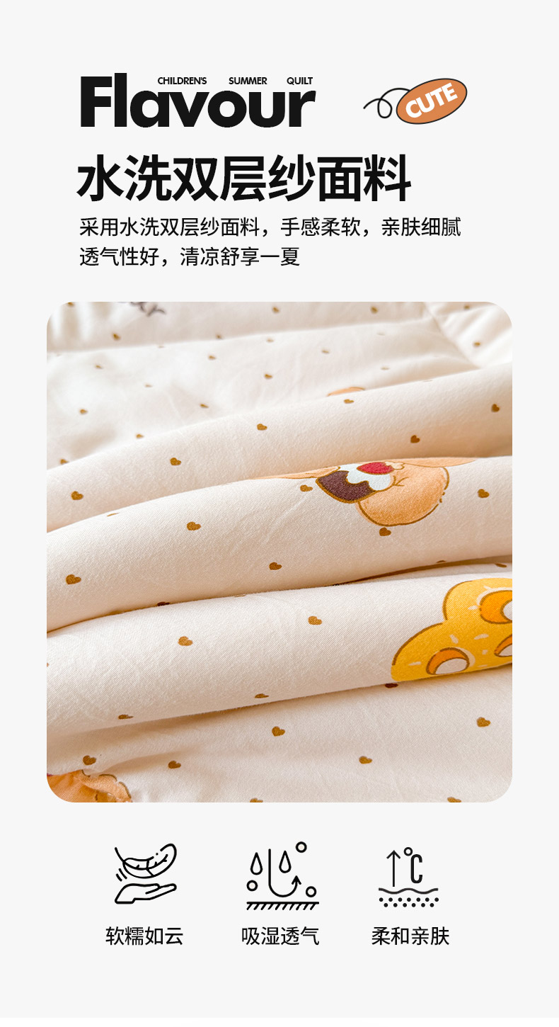 商品名称:熙宴家纺 2025新款A类水洗双层纱100%新疆棉花印花夏被空调被夏凉被 小熊蛋糕