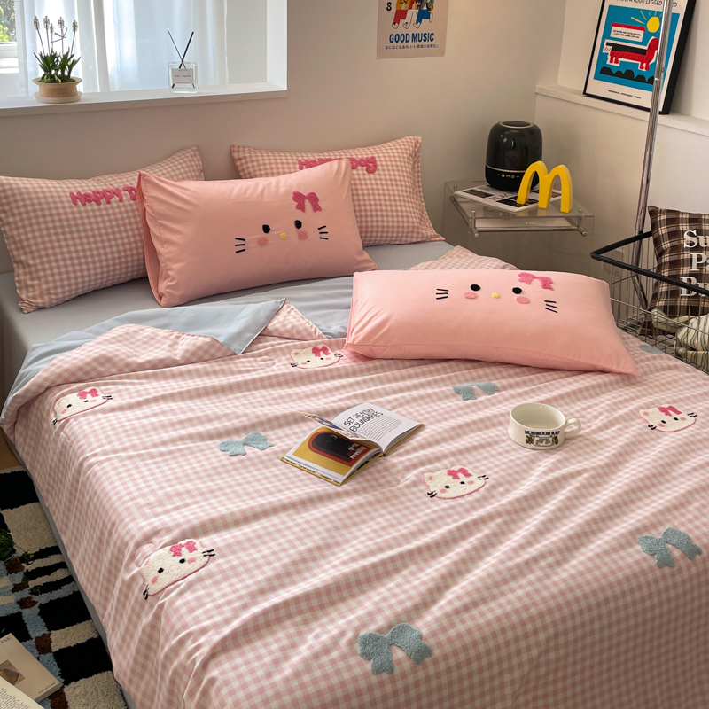 红嘴企鹅2025新款毛巾绣空调被四件套 夏被-咖格小猫
