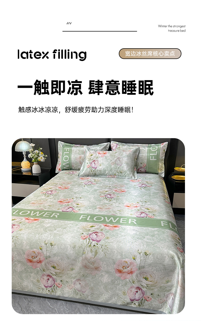 商品名称:许林家纺 2025春夏新款斜纹冰丝凉席轻奢高密大版 睡花间