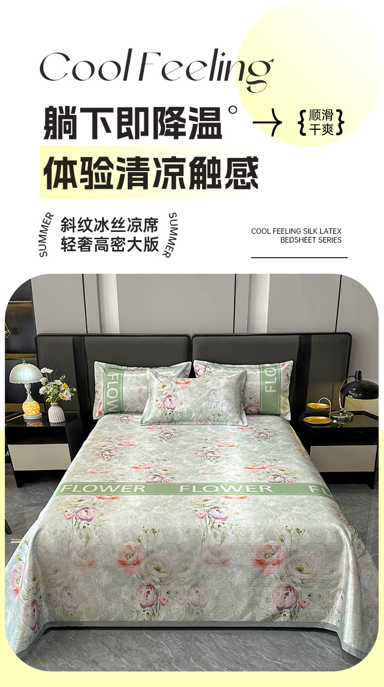 许林家纺 2025春夏新款斜纹冰丝凉席轻奢高密大版 睡花间