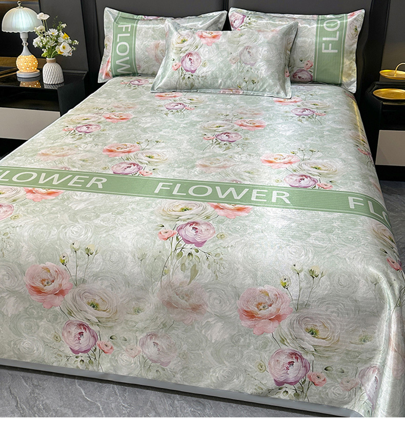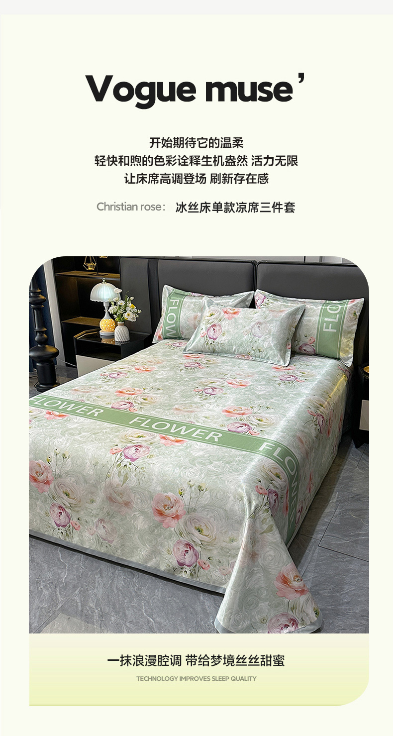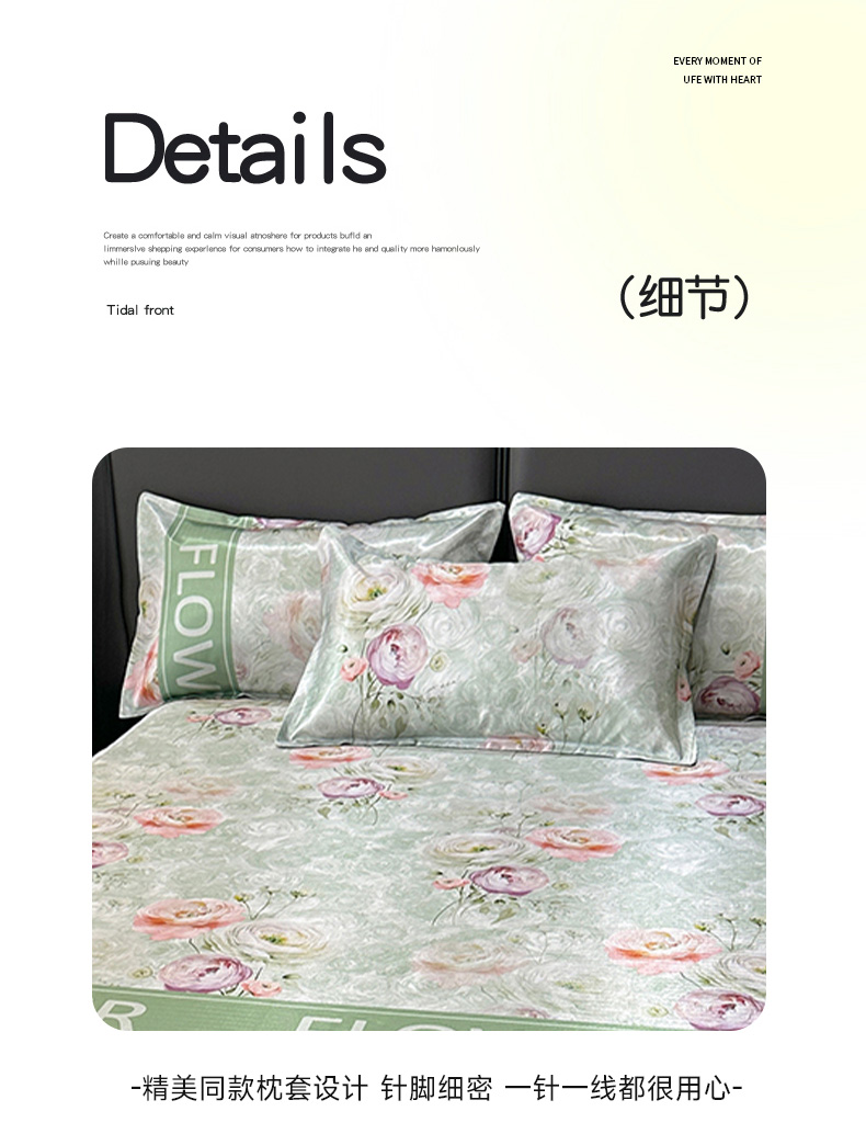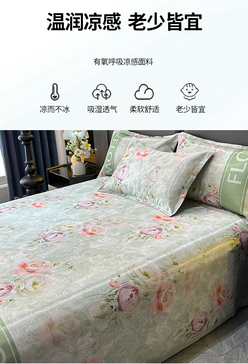 许林 2025新款冰丝凉席床单款凉席三件套-繁花,繁花