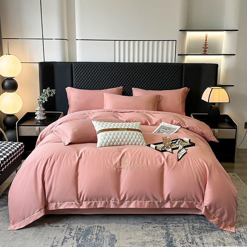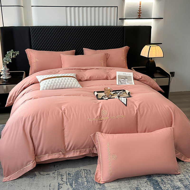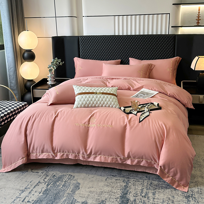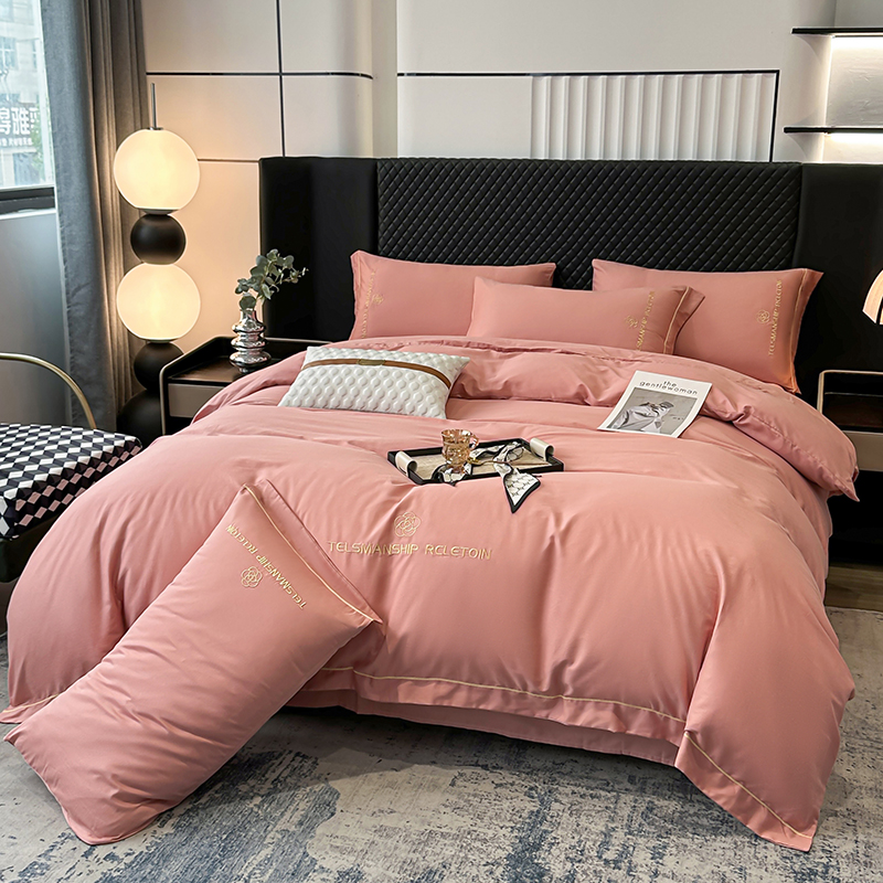当前位置: 91家纺网 > 商品网购 > 床品套件 > 四件套 > 全棉普通四件套 > 宇彬家纺 2025直播新款13374全棉纯棉母婴级压线一字绣纯色刺绣四件套全棉纯棉贡缎新疆长绒字母款铂金系列 茶花-奶油粉
