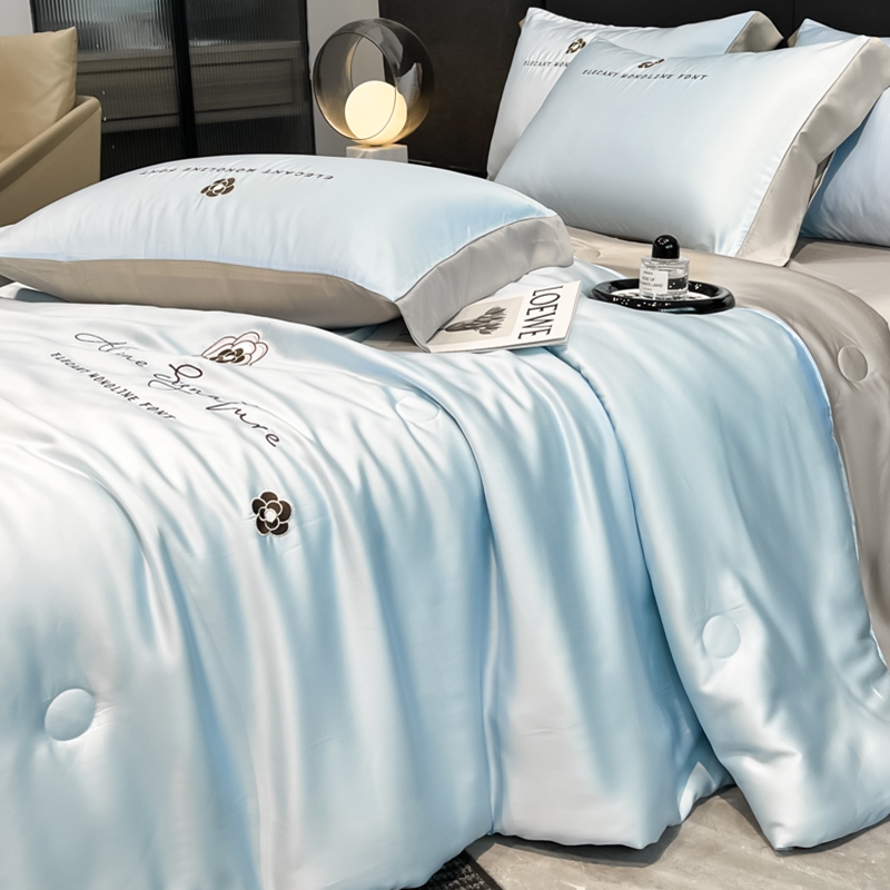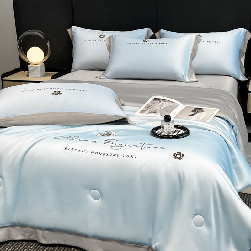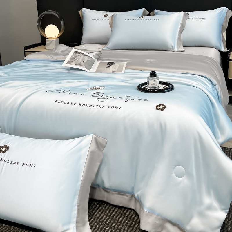 当前位置: 91家纺网 > 商品网购 > 床品套件 > 四件套 > 夏被四件套 > 仔仔熊 2025新款水洗真丝夏凉被四件套-春暖花开系列 春暖花开 天空蓝-山灰