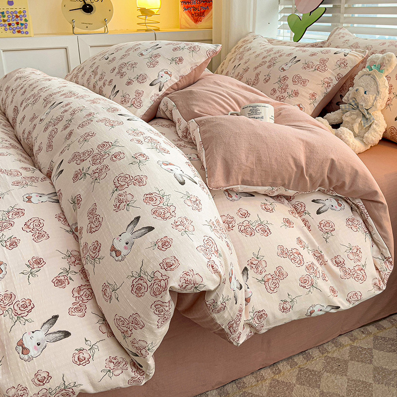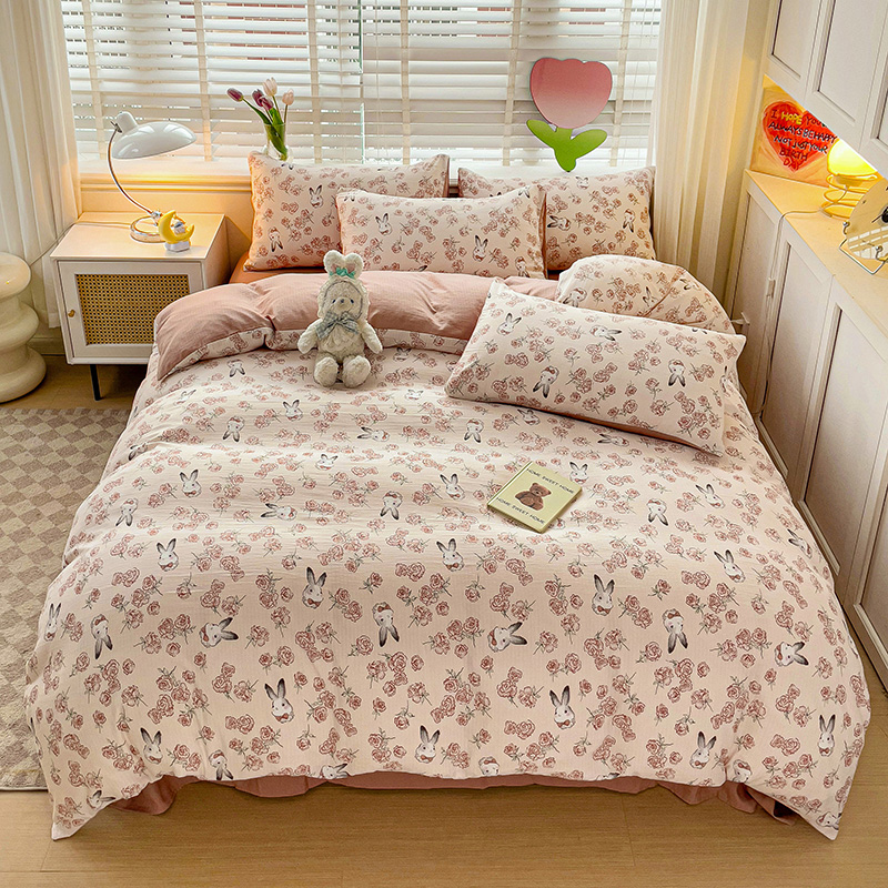 商品名称:王朝国际 2025新款直播热款有氧提花有氧双层纱碎花单被套 花与兔