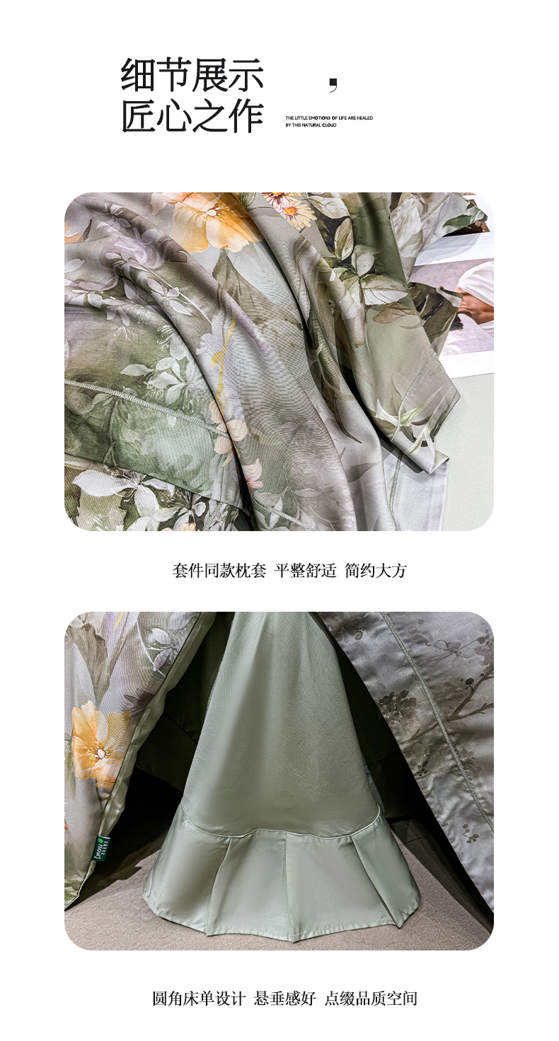 (总)红日子纺织品 2025新款全棉纯棉数码印花四件套,花暖容颜-绿,波斯记忆-蓝,茶山露水-桔,淡雅清风-蓝,芳若-绿,花情共舞-米,焕彩玫瑰-黄,美尼尔-粉,莫兰迪-紫,莫妮花园-粉,浓情蜜意-粉,翩翩花语-绿,秋日盛情-黄,日落花雨-灰,如若梦境-绿,诗丹娜-深蓝,邂逅柔情-蓝,秀雅佳人-灰