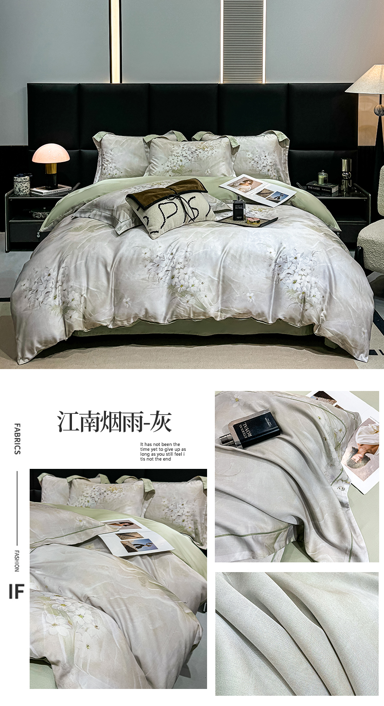 红日子纺织品 2025新款亲肤舒适莱赛尔天丝四件套 蝶舞-灰