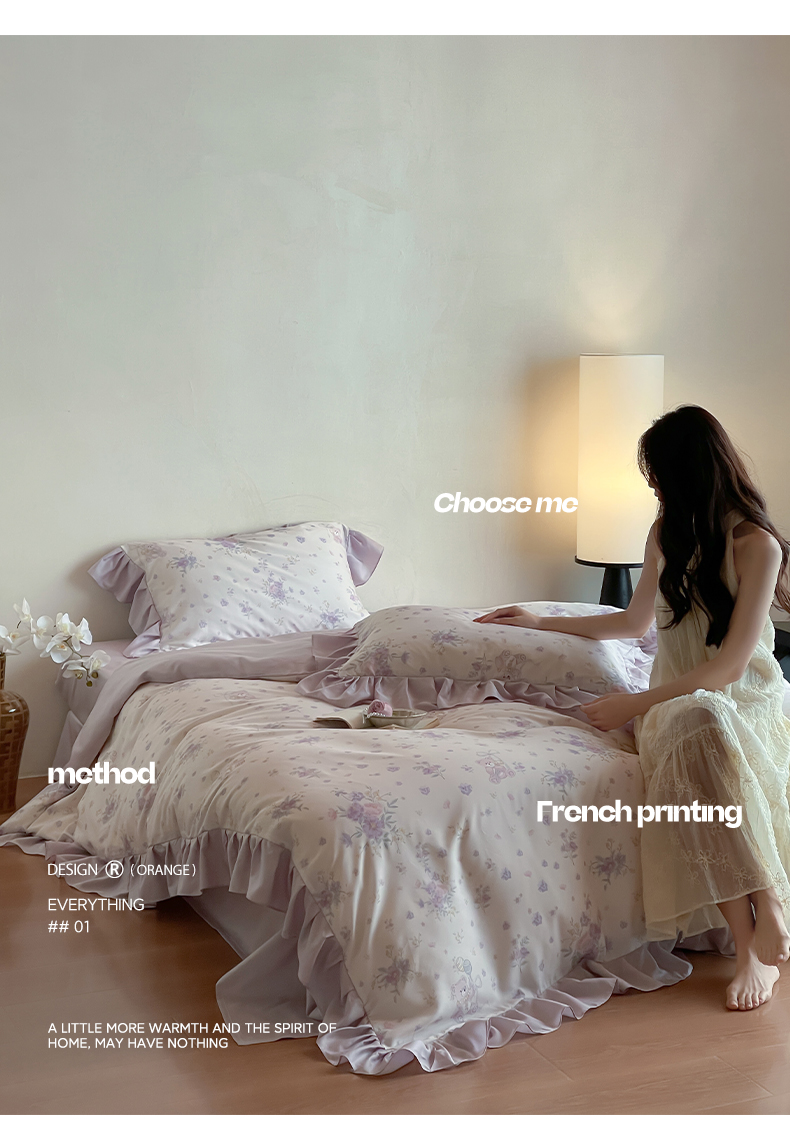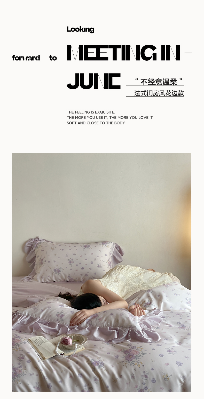 卡巴伦家纺 2025新款天丝四件套-法式闺房风花边款【不得低于(店铺折后/券后)标准:249元】 晚香