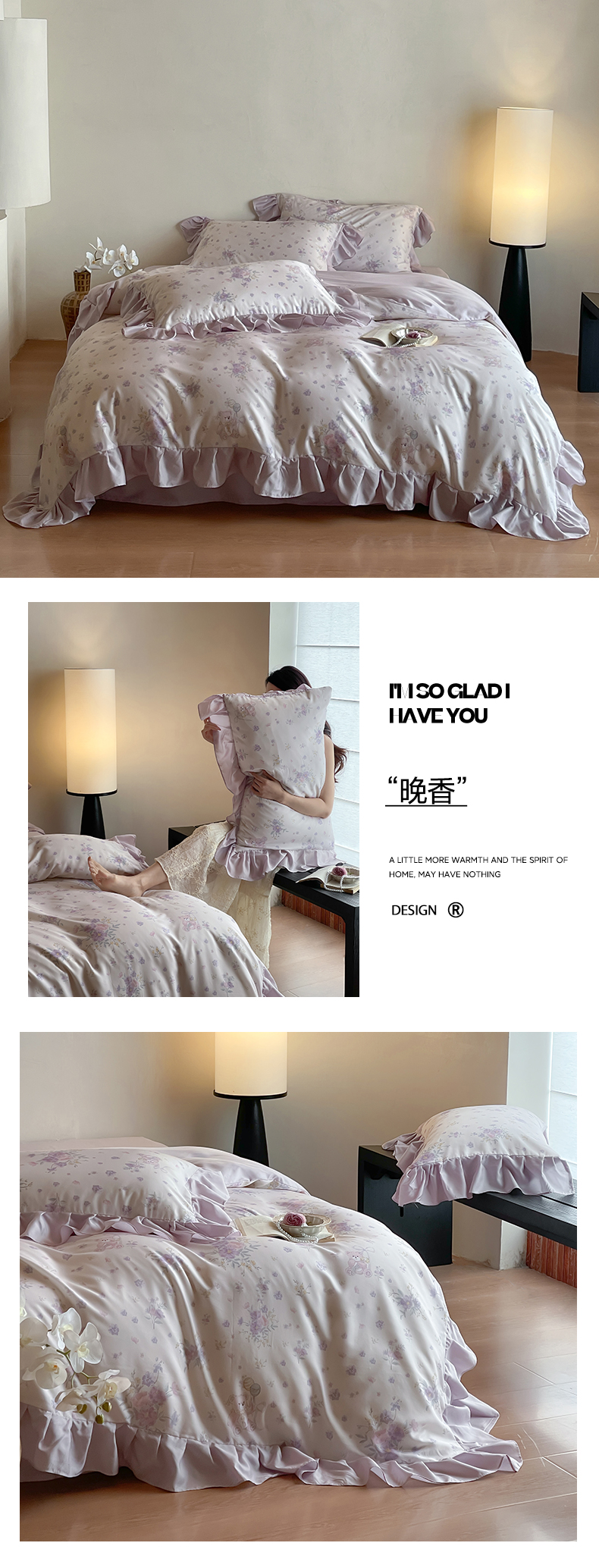 商品名称:卡巴伦家纺 2025新款天丝四件套-法式闺房风花边款【不得低于(店铺折后/券后)标准:249元】 晚香