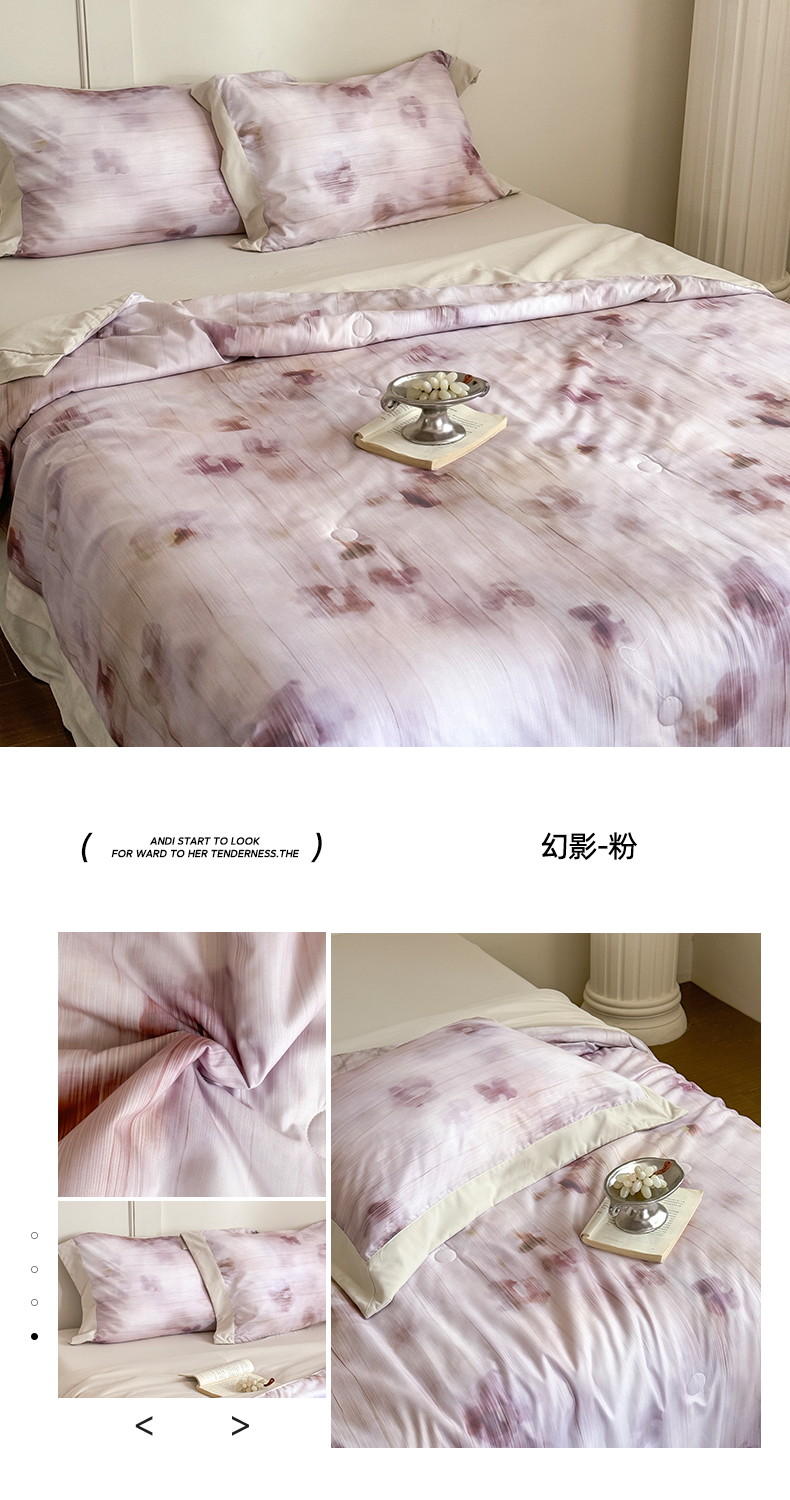 商品名称:亿莱鑫 2025新款7A抗菌超软柔肤棉轻奢床裙款夏凉被 空调被 被子夏被四件套-蝶恋花系列 幻影-粉