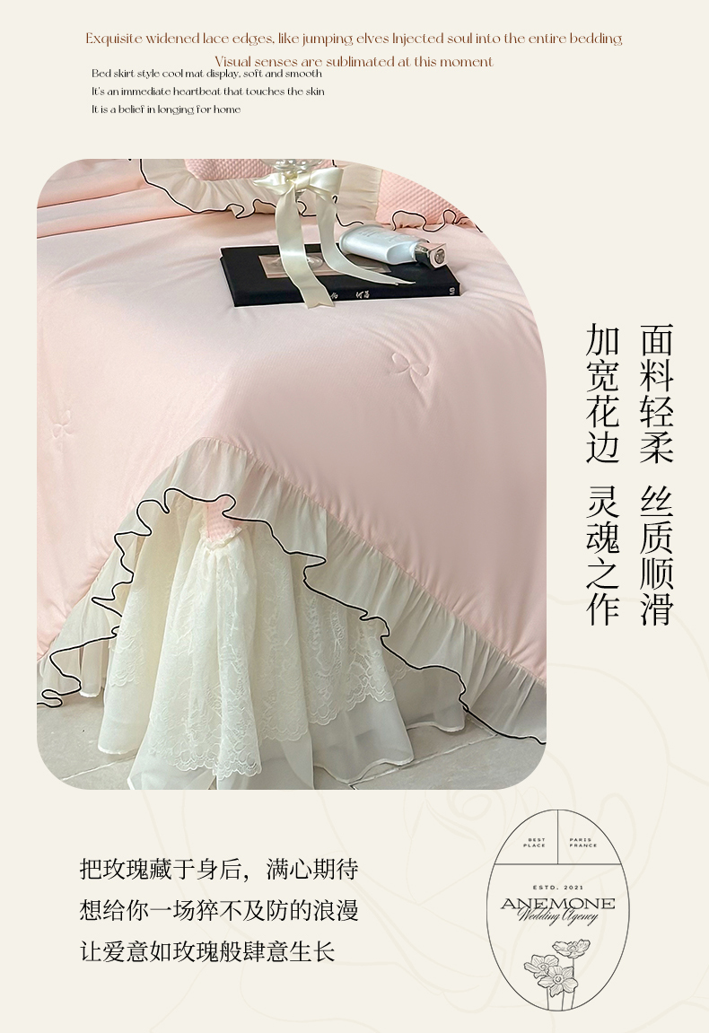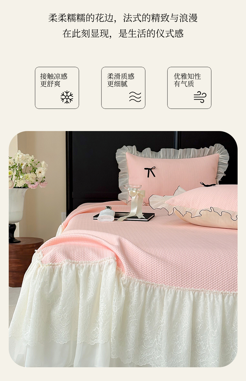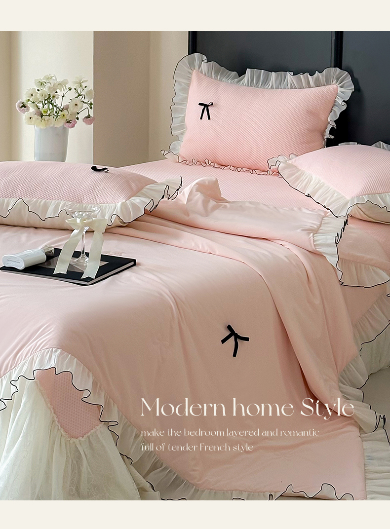 当前位置: 91家纺网 > 商品网购 > 床品套件 > 四件套 > 夏被四件套 > 婳庭家居 2025新款法式蕾丝蝴蝶结夏被夏凉被空调被四件套 淡粉
