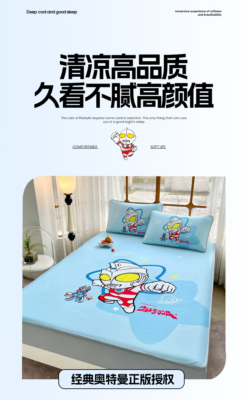 当前位置: 91家纺网 > 商品网购 > 床上用品 > 凉席 > 其他凉席 > 蘭菲家纺 2025新款冰丝奥特曼凉席套件 飞天
