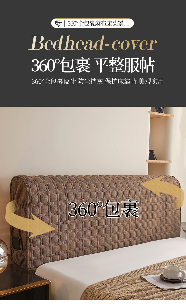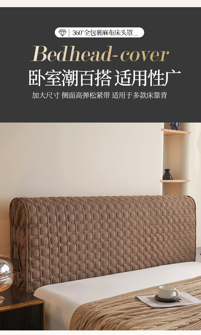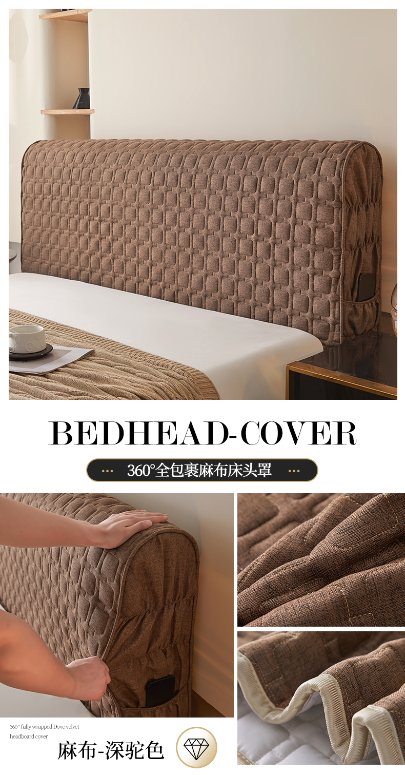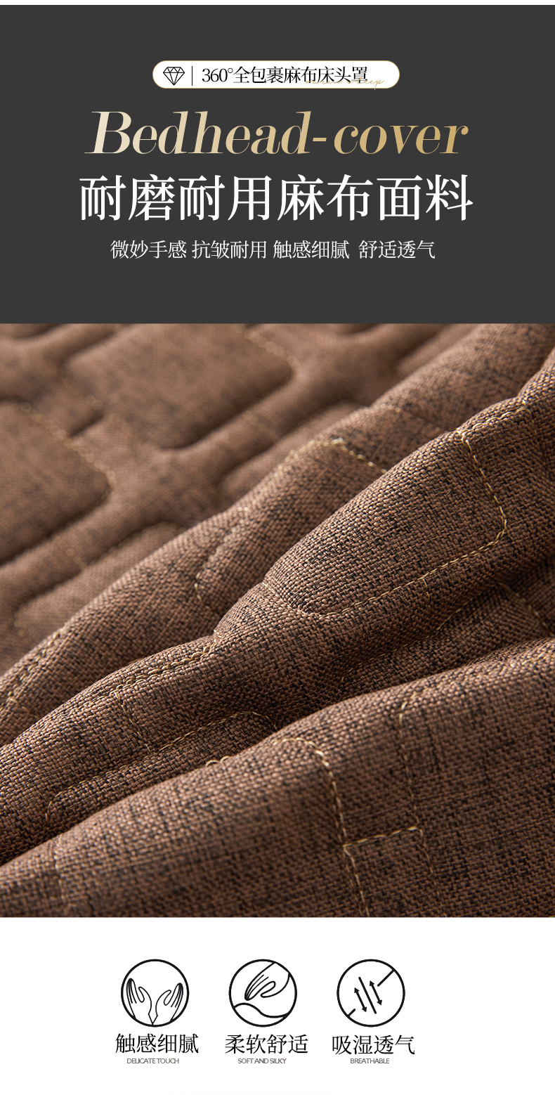 情恒家纺 2025新款麻布全包床头罩 麻布-深驼色