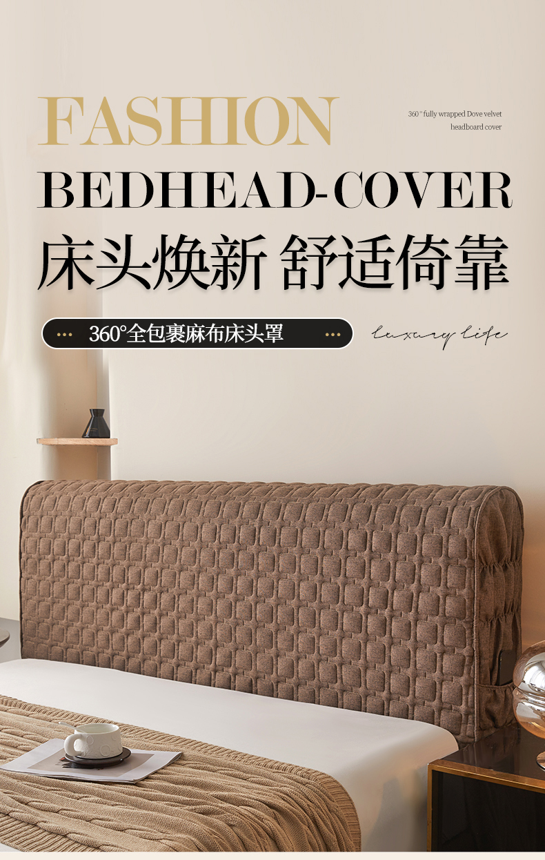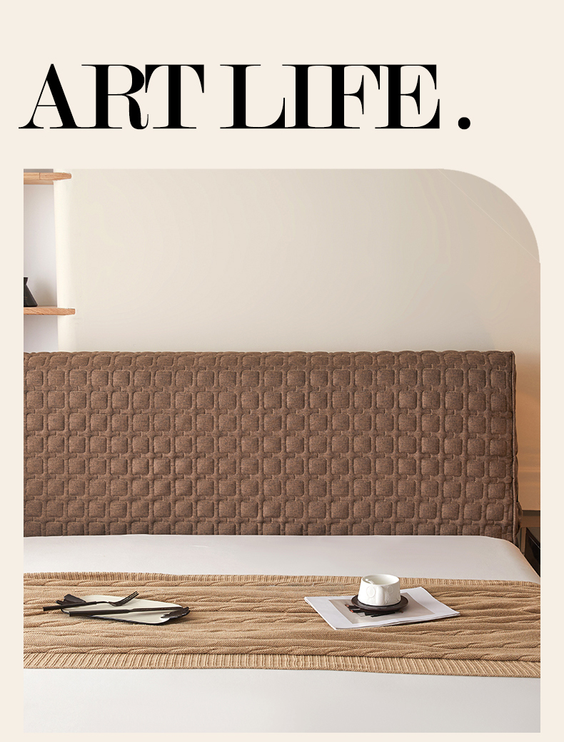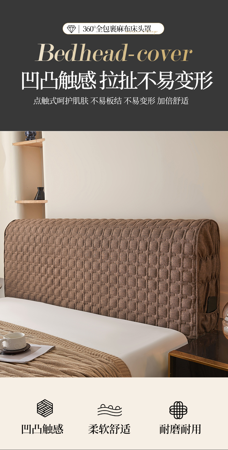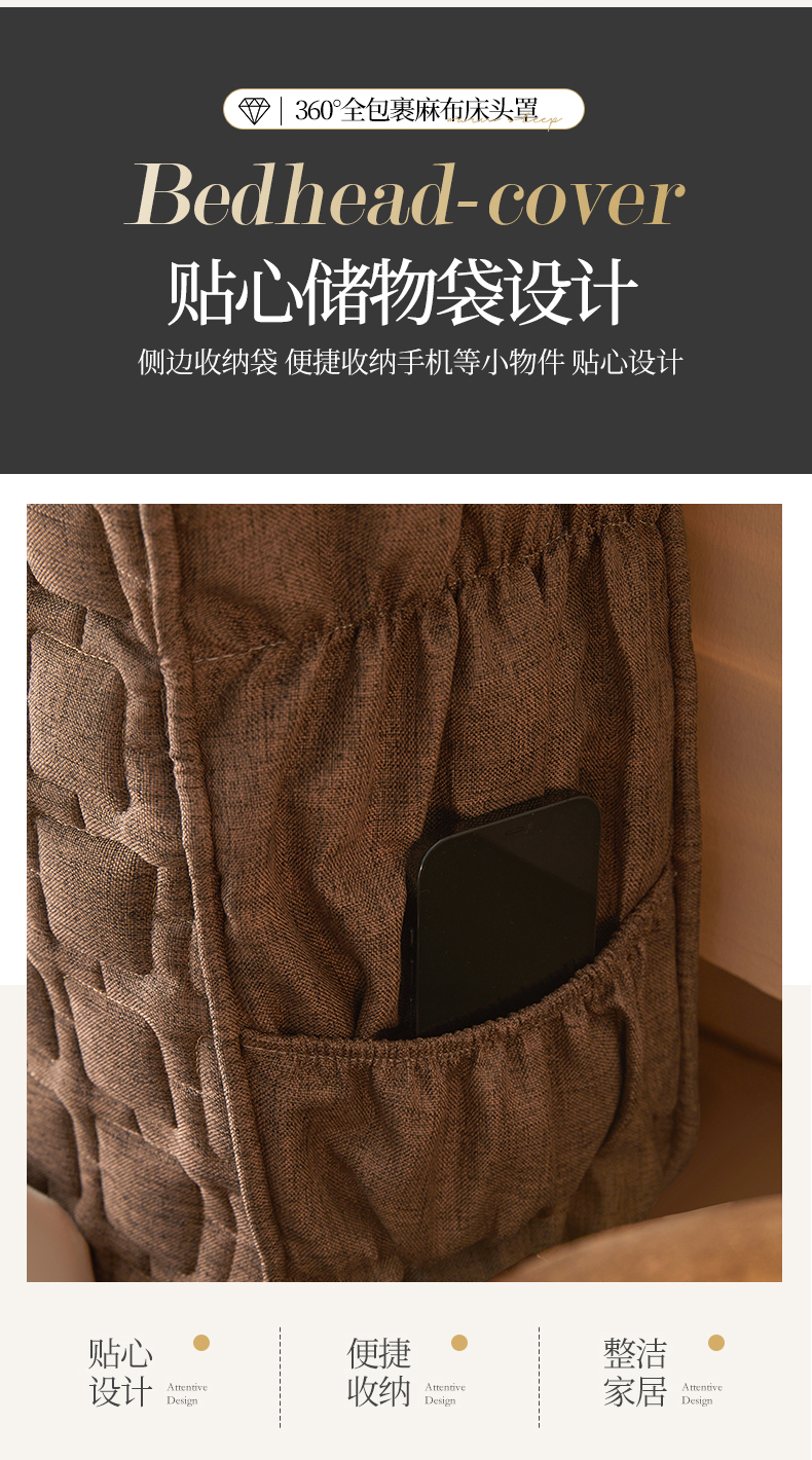 情恒家纺 2025新款麻布全包床头罩 麻布-深驼色
