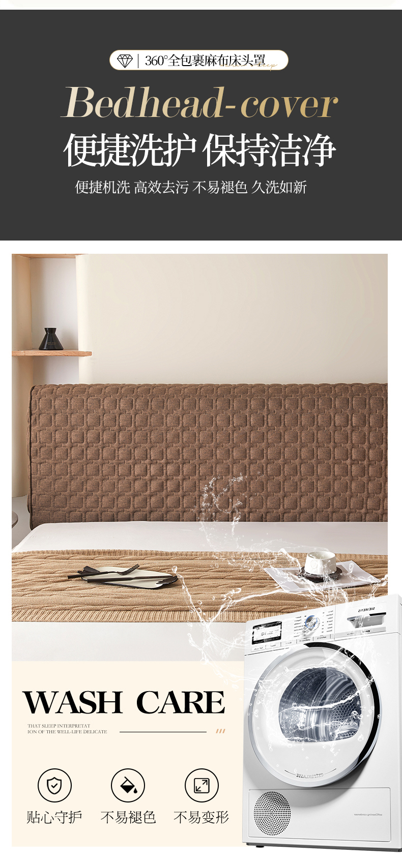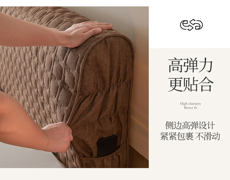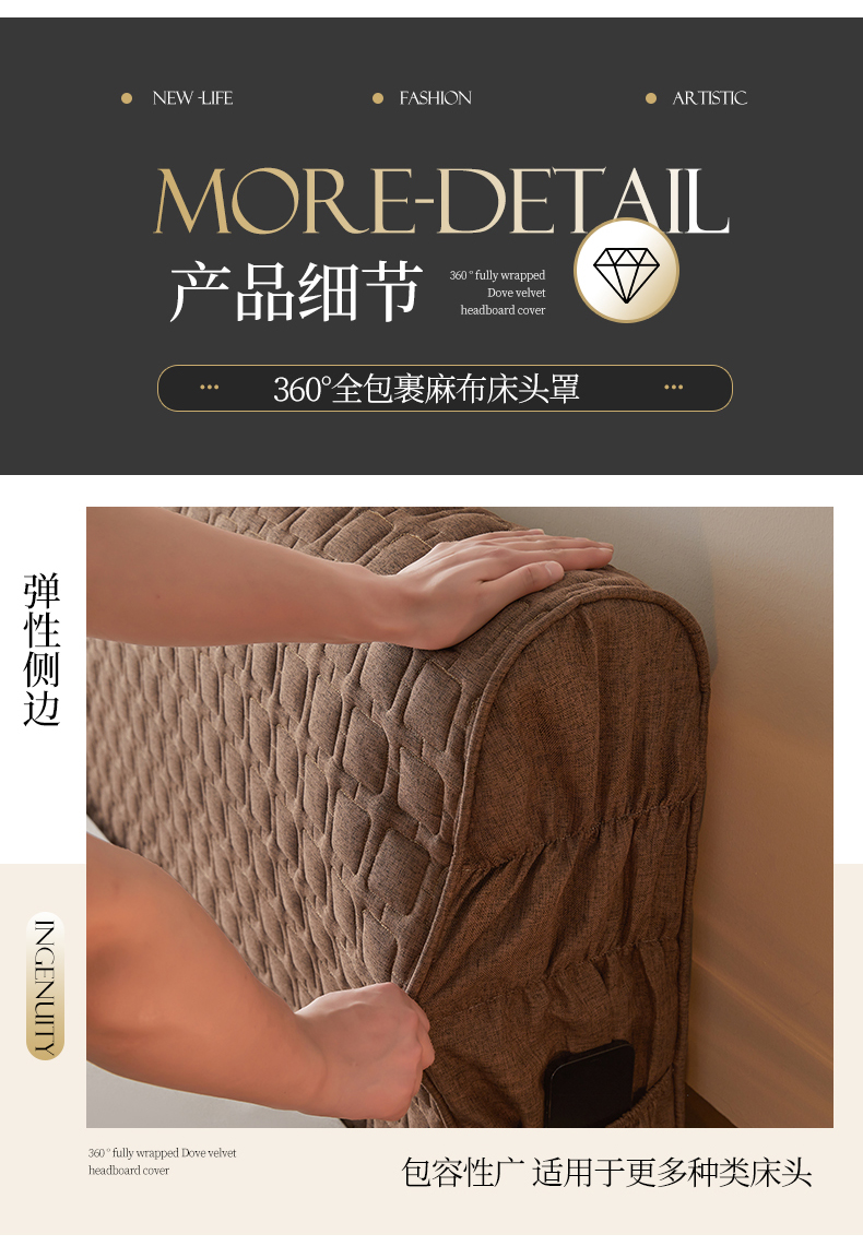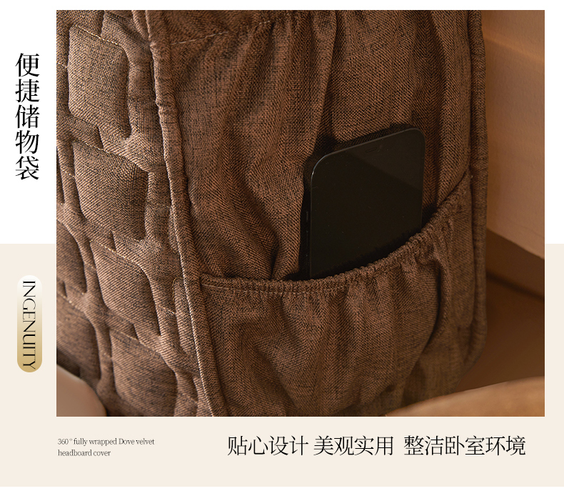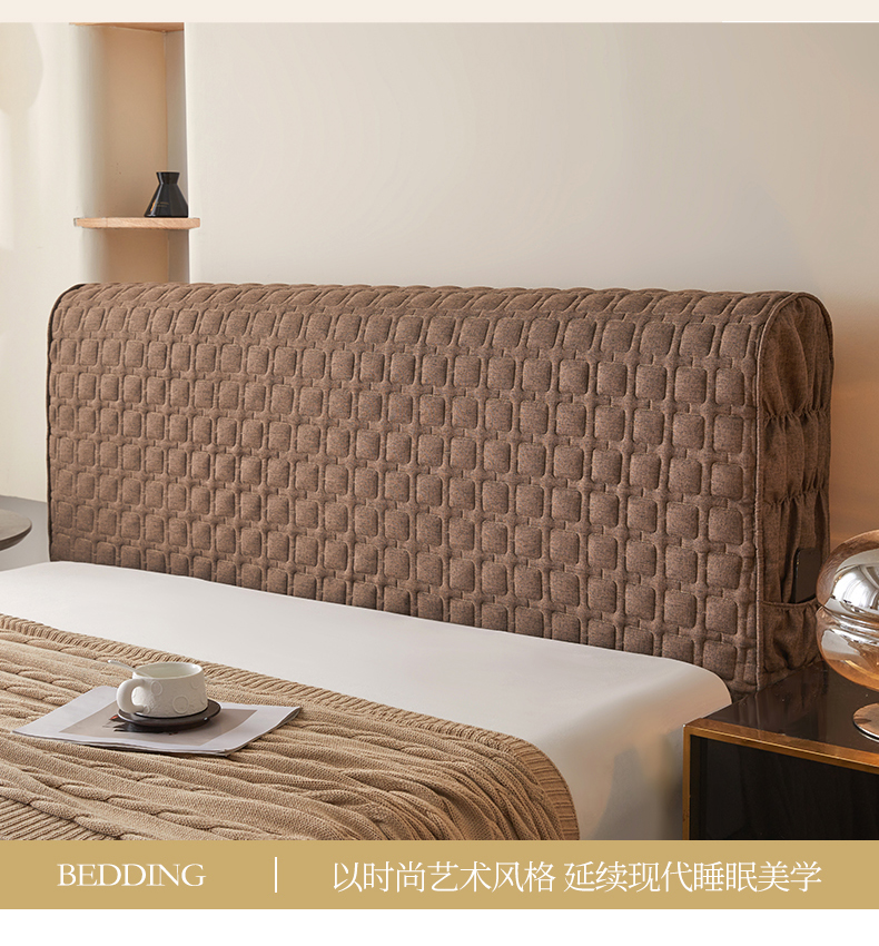 情恒家纺 2025新款麻布全包床头罩 麻布-深驼色