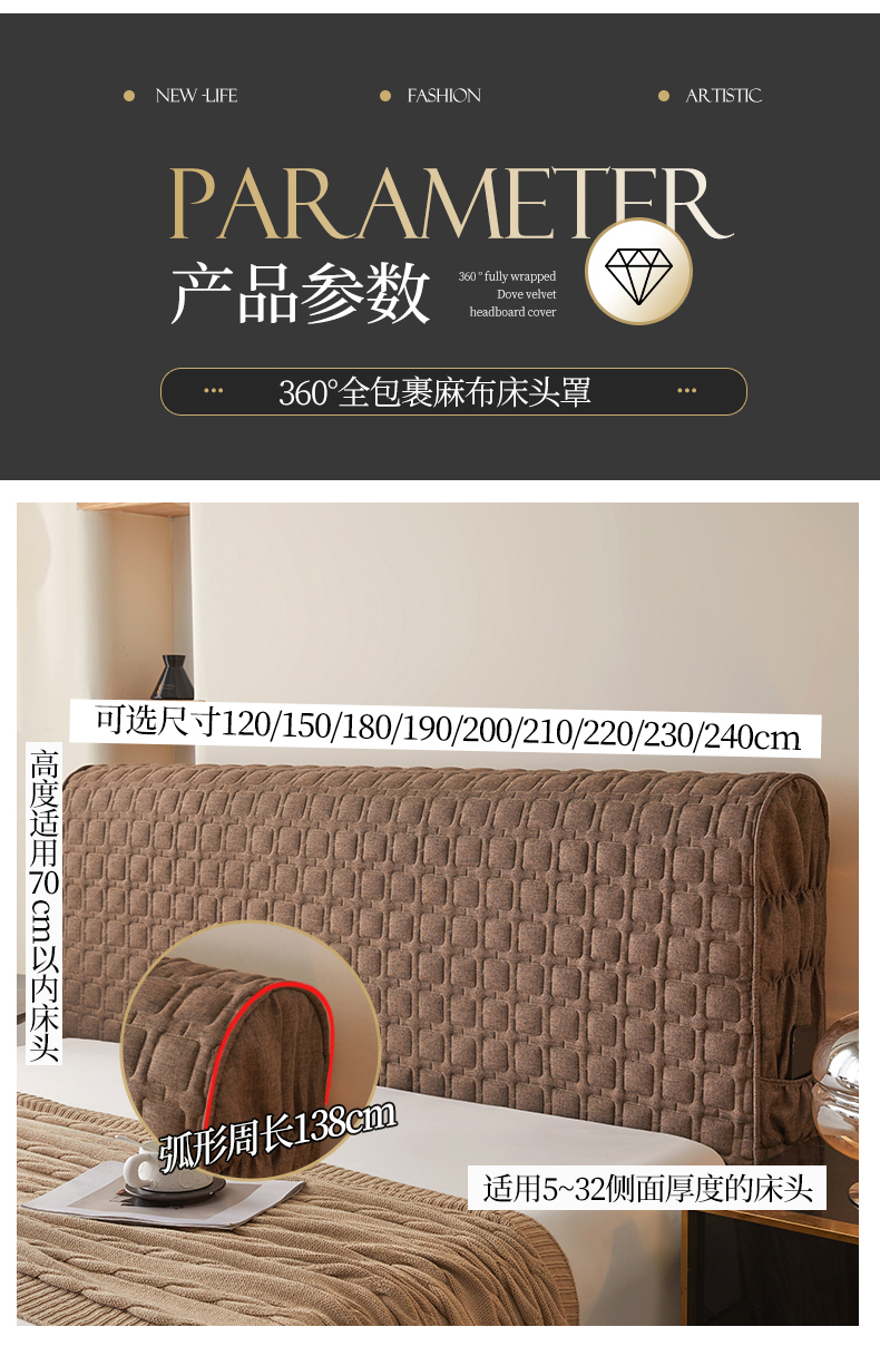 • 91家纺网 家纺一手货源 找家纺 情恒家纺 2025新款麻布全包床头罩 麻布-深驼色