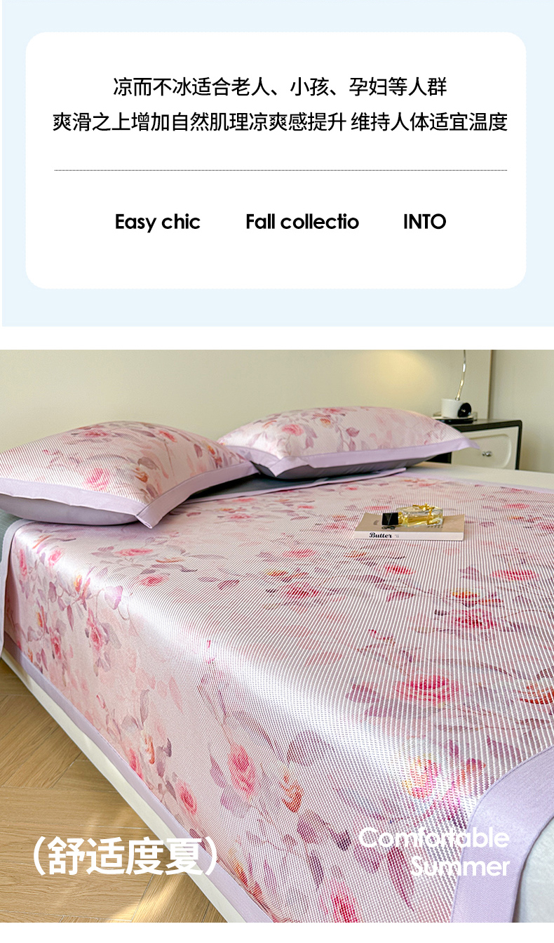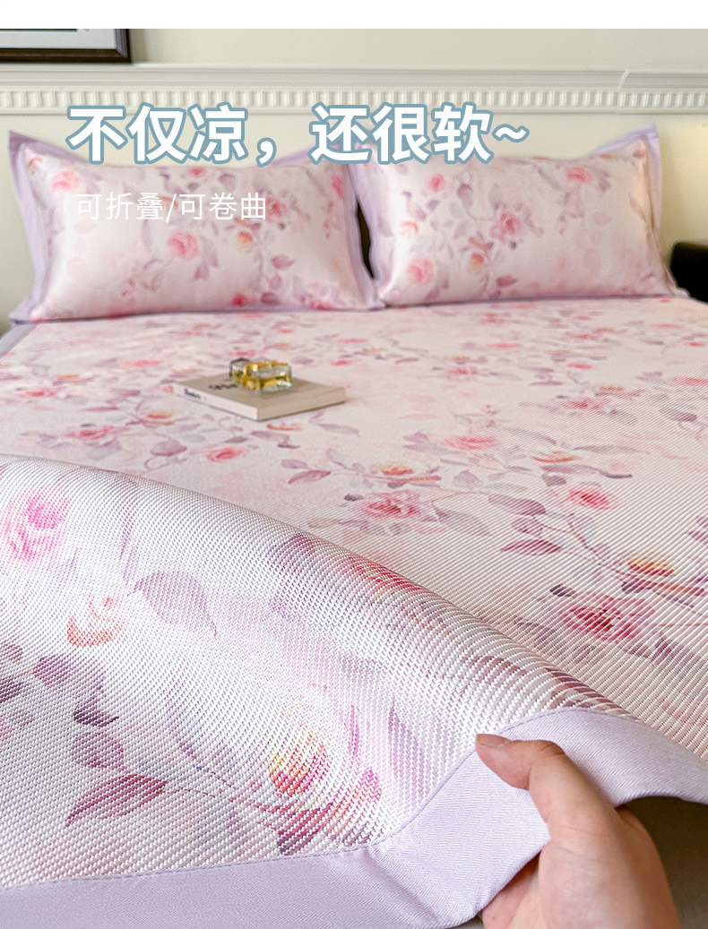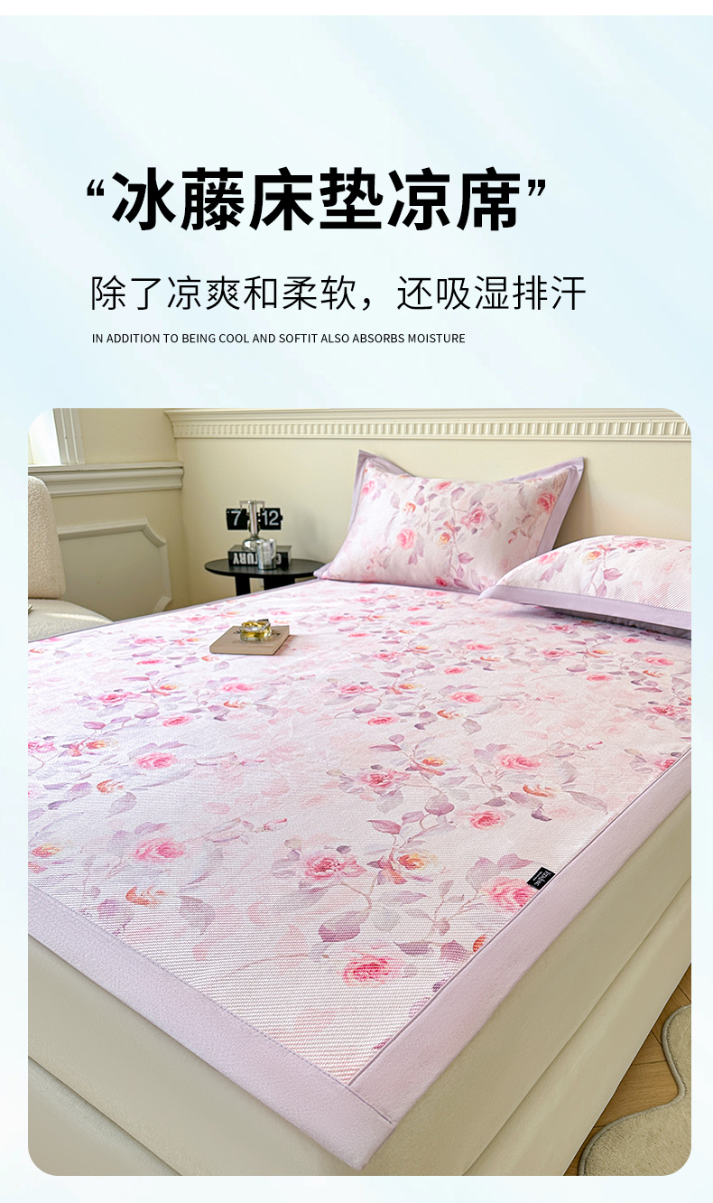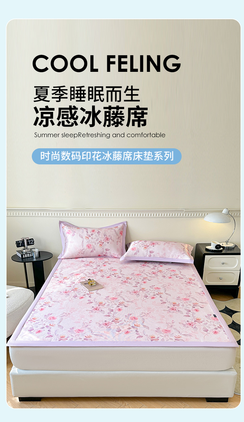 商品名称:宜代光年 2025新款数码印花冰藤席-床席款 冰藤玉琼枝 粉