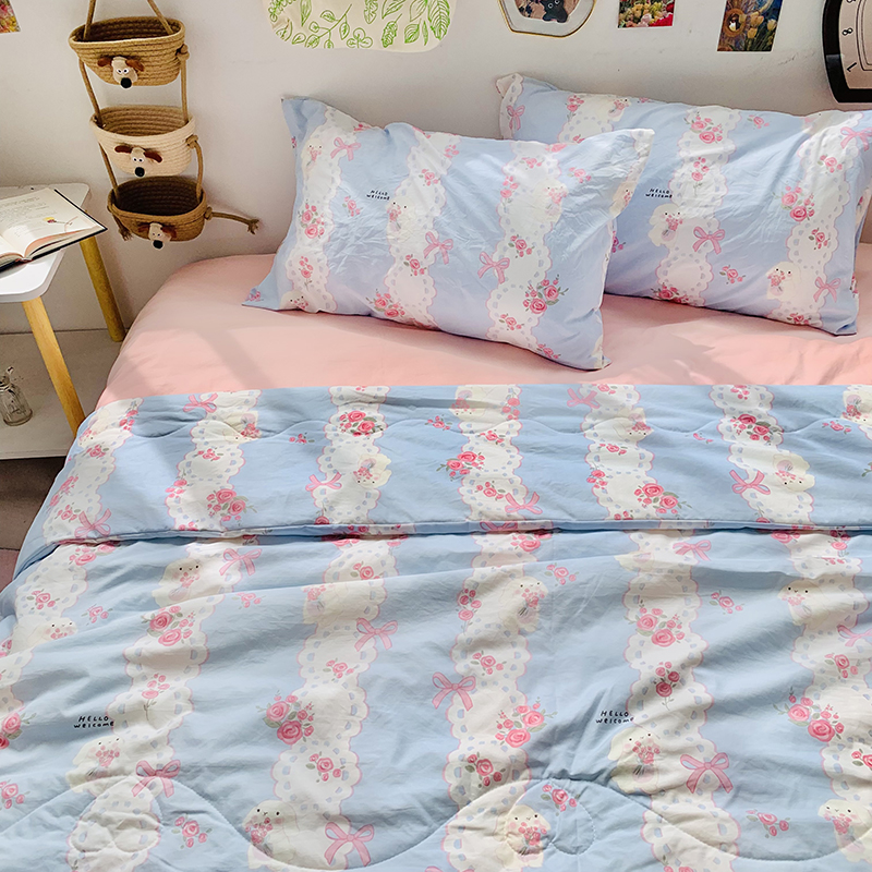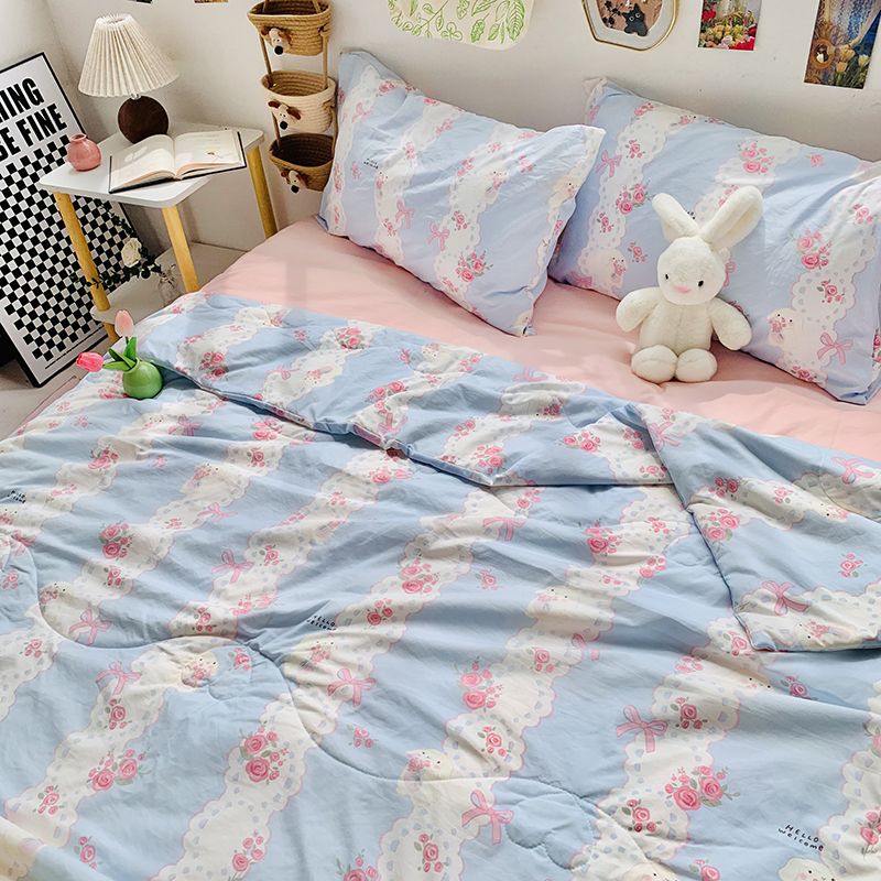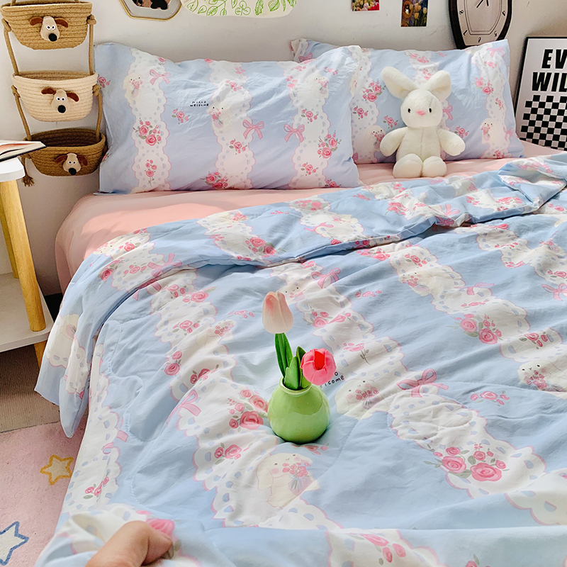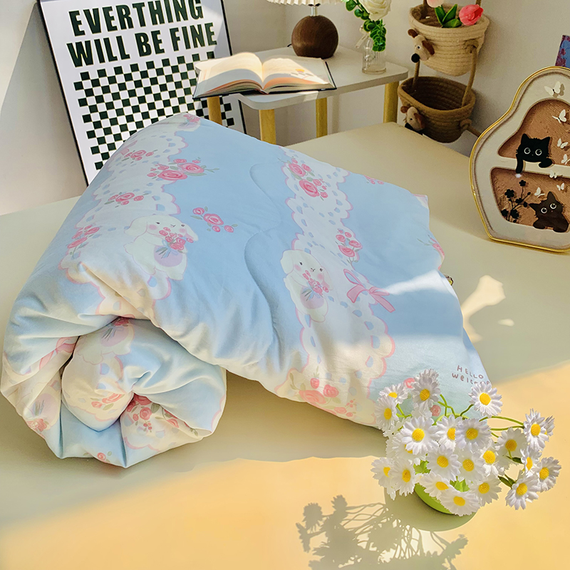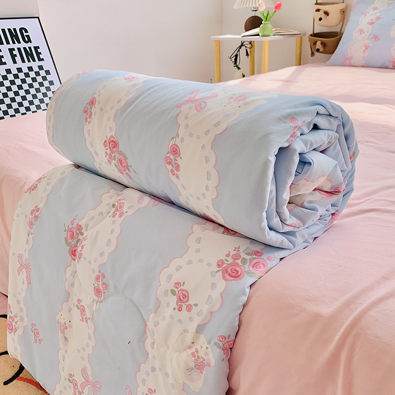 2025新款1活性印染水洗棉大豆夏被 夏被-玫瑰小兔