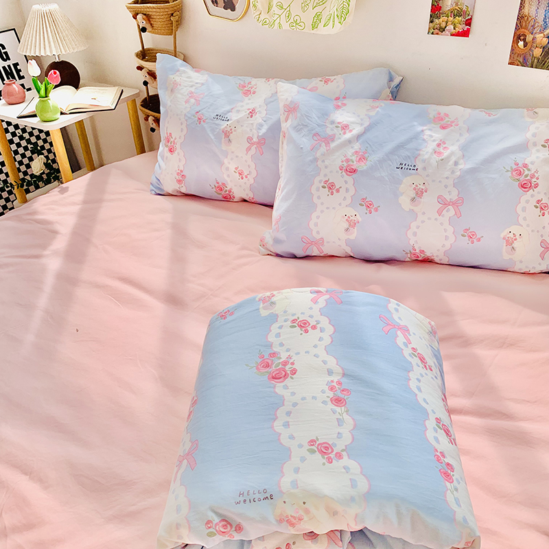 • 91家纺网 家纺一手货源 找家纺 2025新款1活性印染水洗棉大豆夏被 夏被-玫瑰小兔