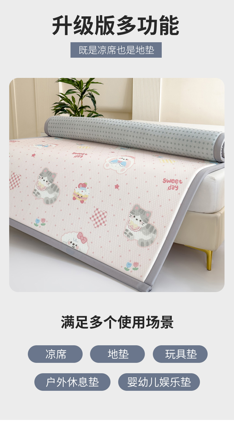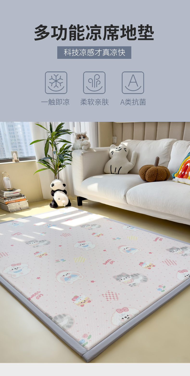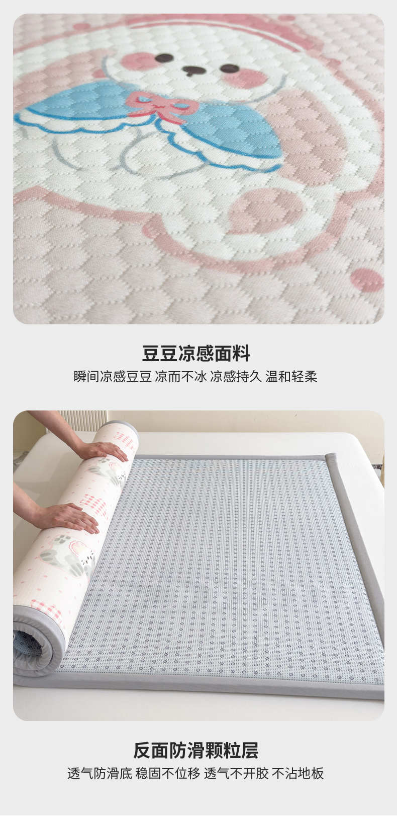 (总)席世家 2025新款凉感豆豆多功能地垫凉席垫,波洛格-粉,波洛格-灰,波洛格-蓝,波洛格-米,小熊-粉,小熊-蓝
