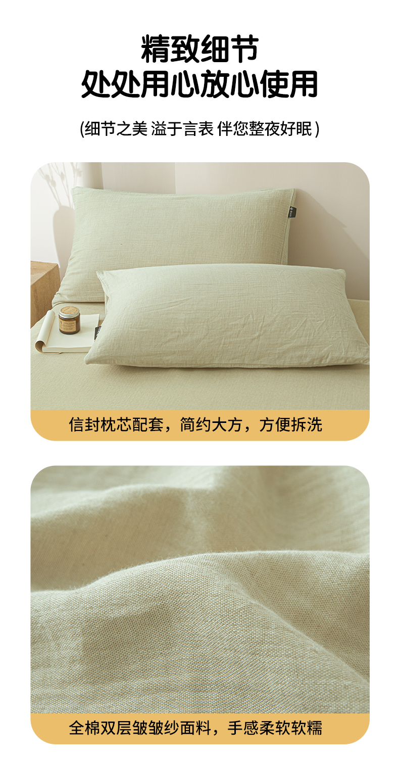 当前位置: 91家纺网 > 商品网购 > 床上用品 > 床单 > 鑫钰 2025新款纯色系列全棉双层皱皱纱床单-床笠 淡雅绿-床笠
