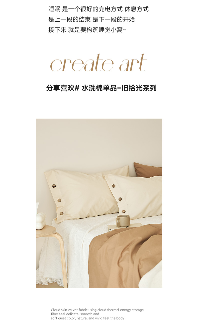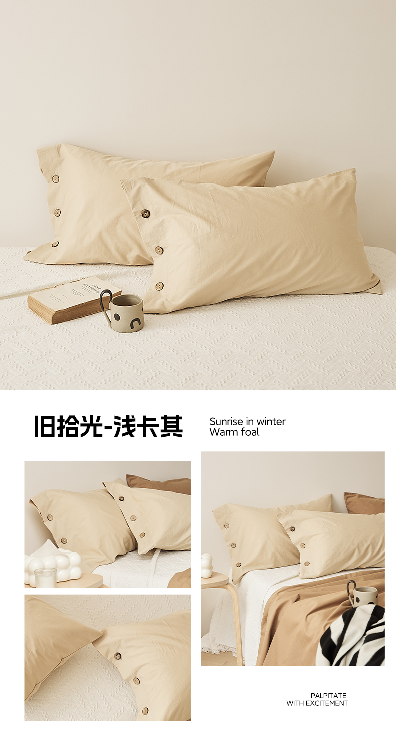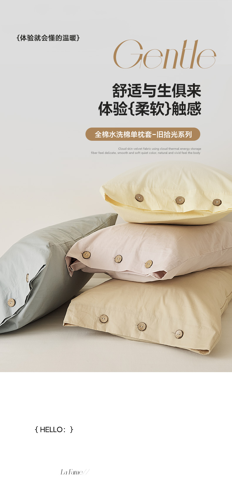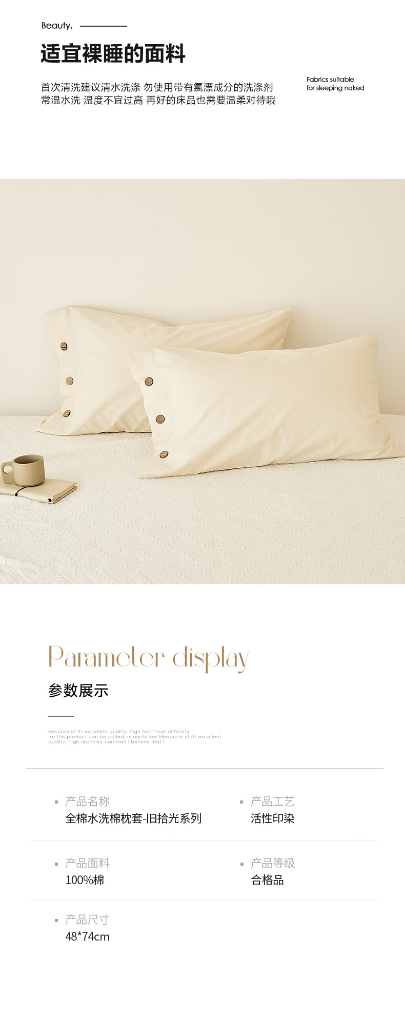 商品名称:EH家居 2025新款旧拾光系列全棉水洗棉单品枕套 旧拾光-奶白色