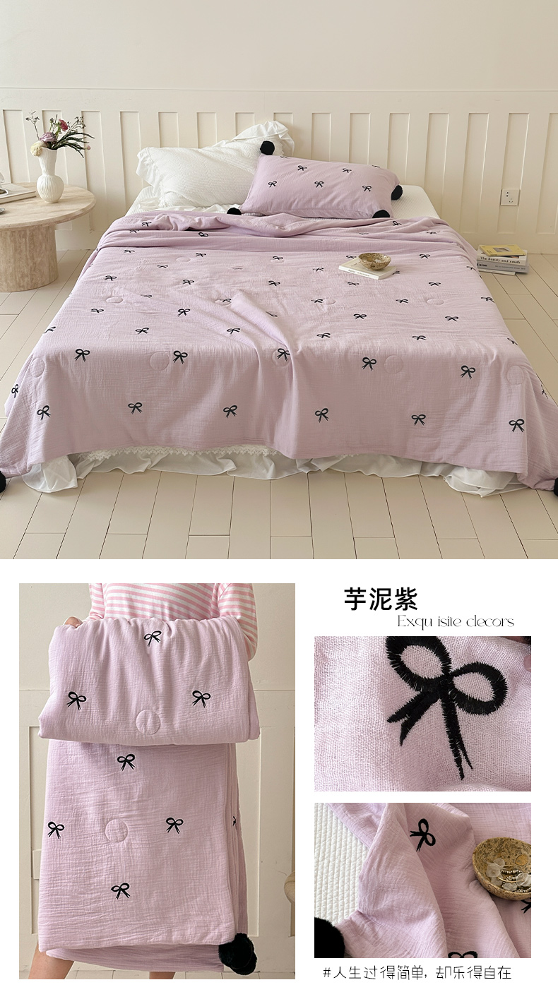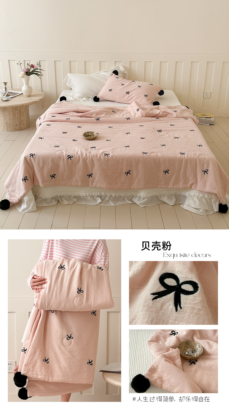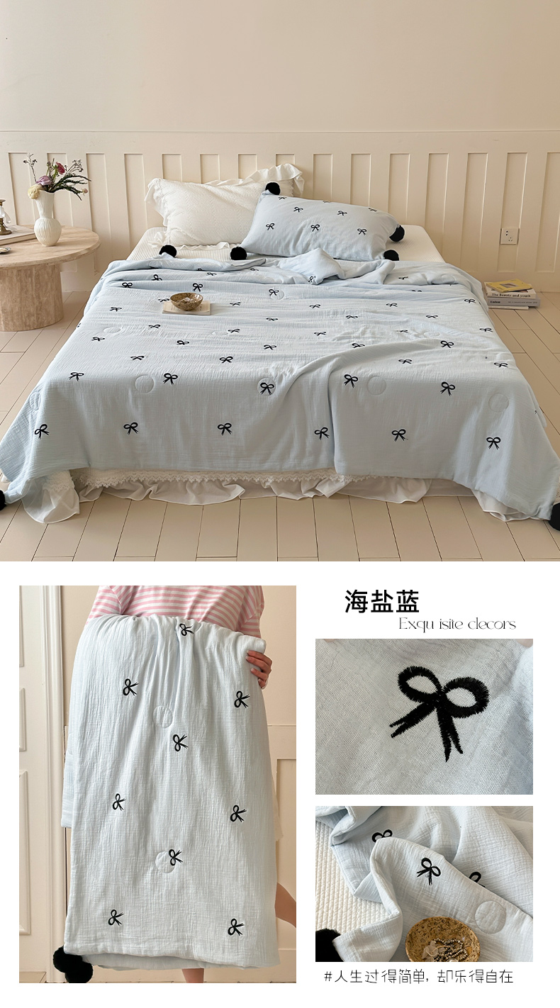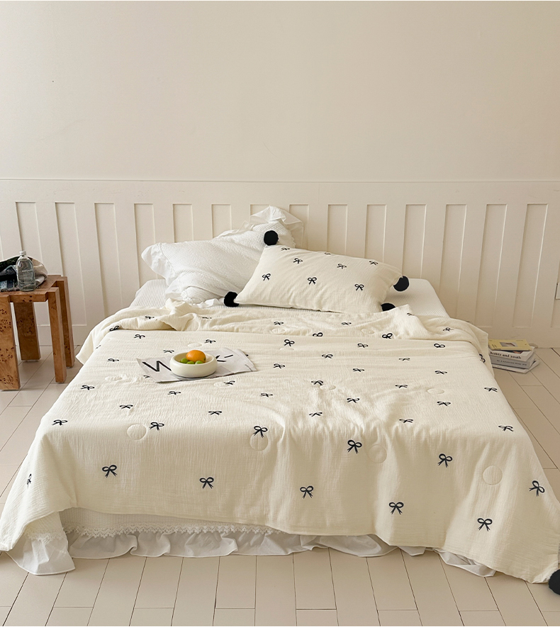 商品名称:(总)圆岛家纺 2025新款全棉皱皱纱蝴蝶结刺绣夏被被子被芯