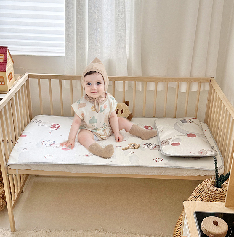(总)橘滋 2025夏日新款高端A类原创设计婴儿童趣卡通数码印花冰丝席凉席-床席床笠,大眼熊仔,叠叠乐园,蝴蝶结兔兔,欢乐曲奇,木马小熊,太空冒险,熊猫胖达