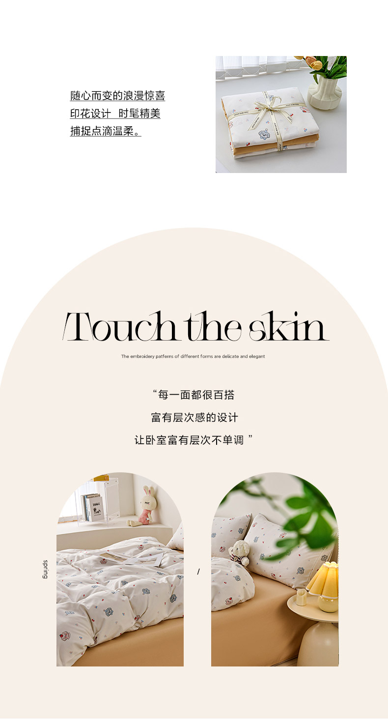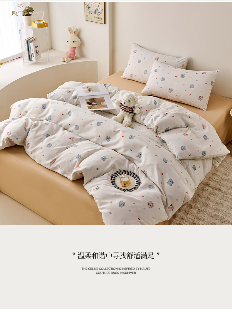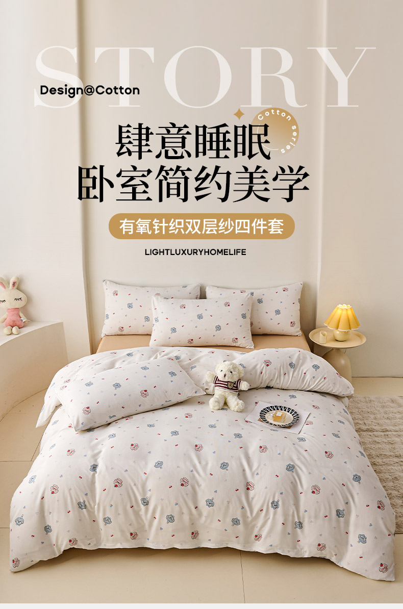 爱诗诺家纺 2025新款有氧高克重针织棉双层纱四件套 萌趣