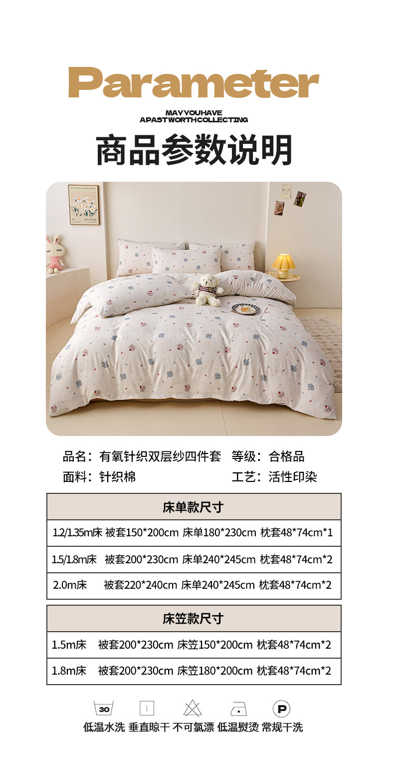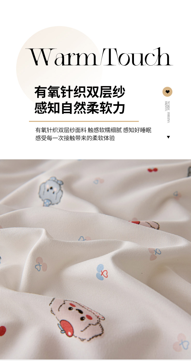 商品名称:爱诗诺家纺 2025新款有氧高克重针织棉双层纱四件套 萌趣