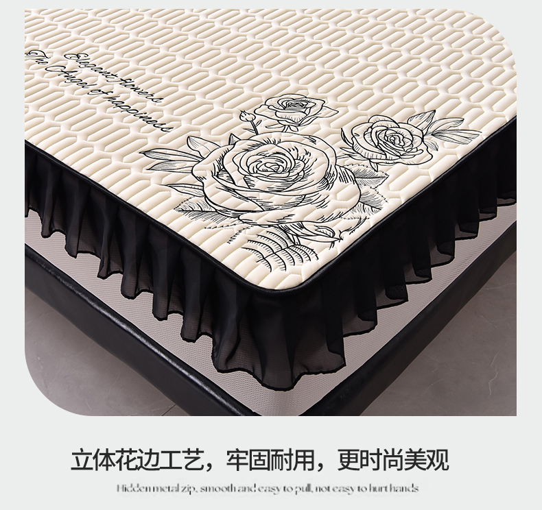 炫拼家纺 2025春夏新款A类凉感丝花边床笠款乳胶凉席-法式玫瑰 法式玫瑰-玉石白