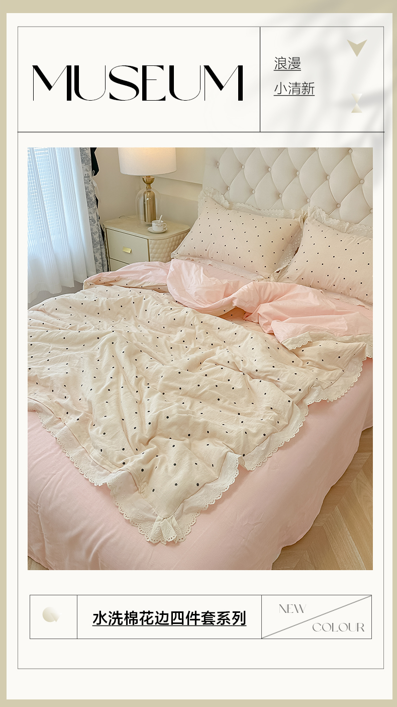 (总)盼季家纺 2025新款水洗棉蕾丝花边四件套