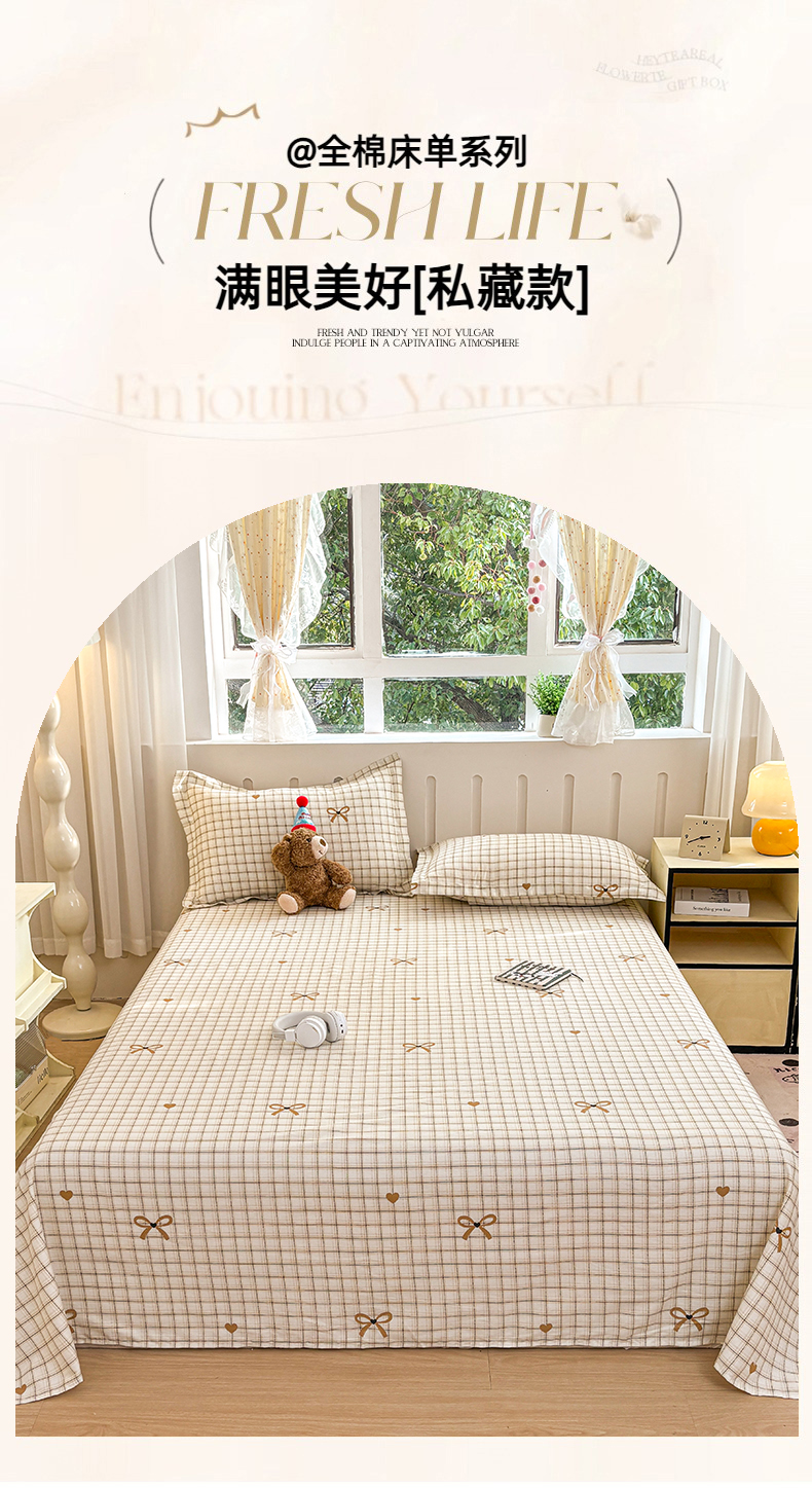 • 91家纺网 家纺一手货源 找家纺 大吉 2025新款亲肤舒适全棉纯棉喷气小清新印花系列单床单床单单件单品床单 小欢喜
