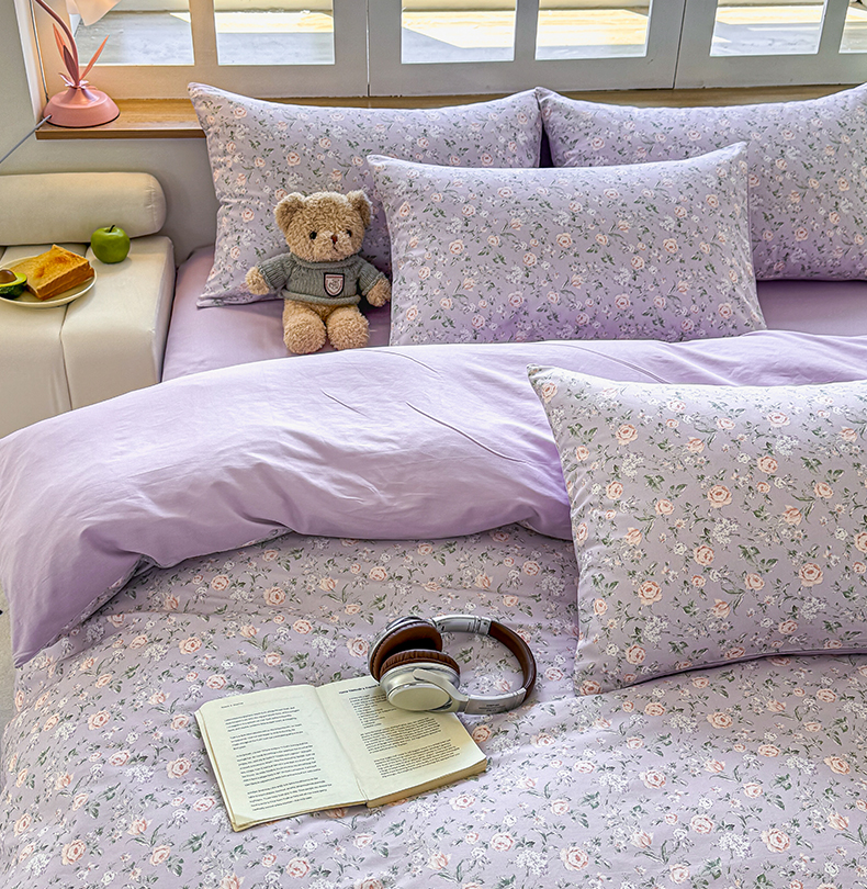 芊寻家居 2025新款13372全棉印花系列四件套 茉莉清雨 紫