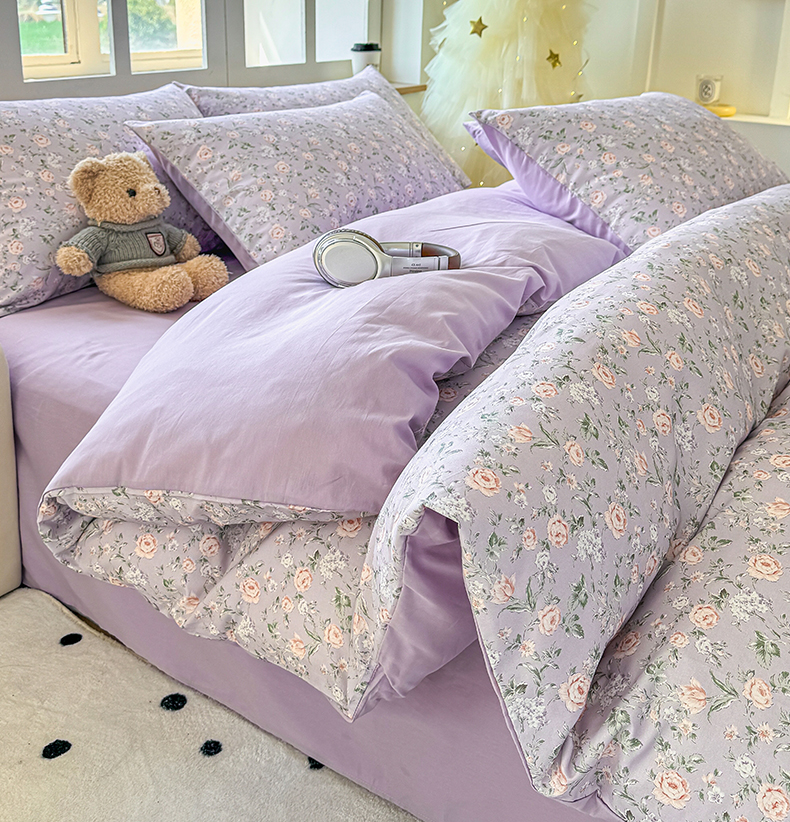 商品名称:芊寻家居 2025新款13372全棉印花系列四件套 茉莉清雨 紫