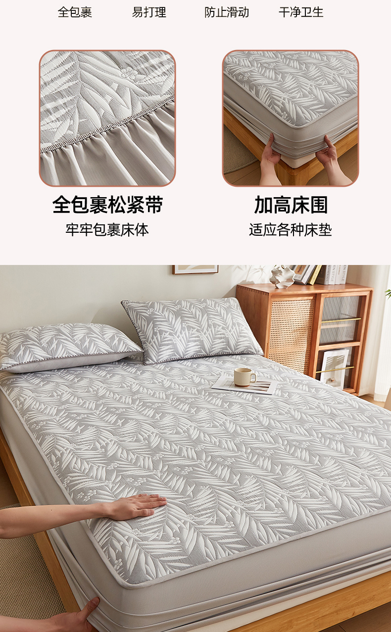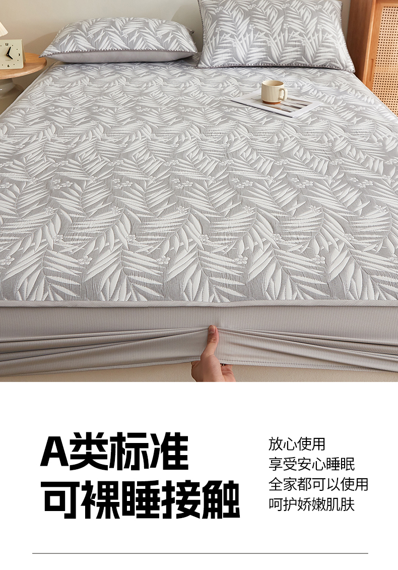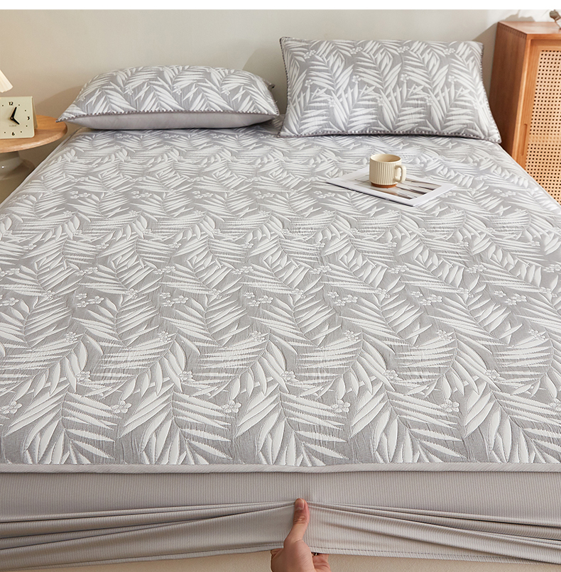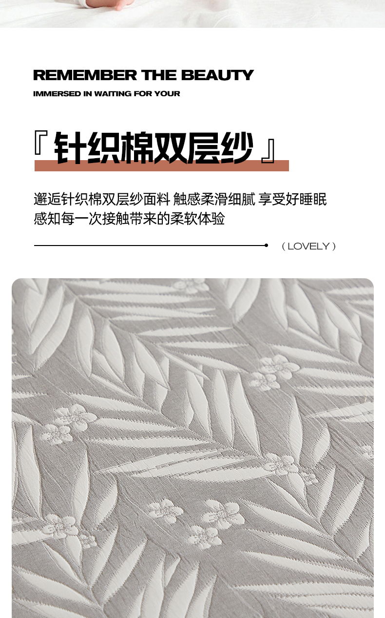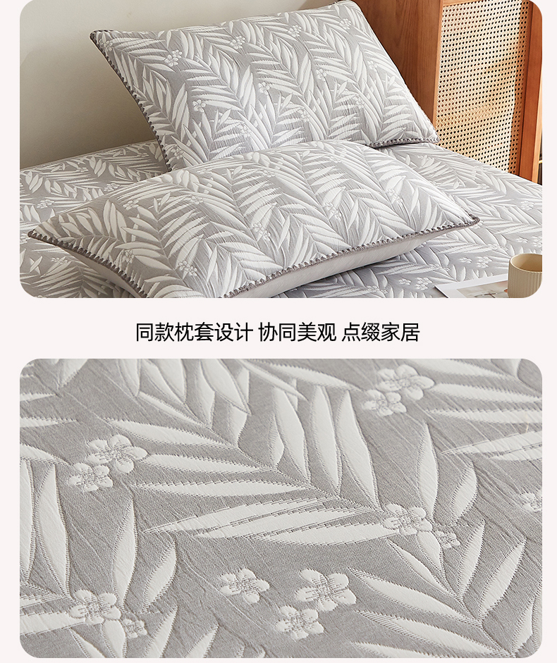 商品名称:梦镜家纺 2025新款A类针织双层纱床笠 细叶-雅致灰
