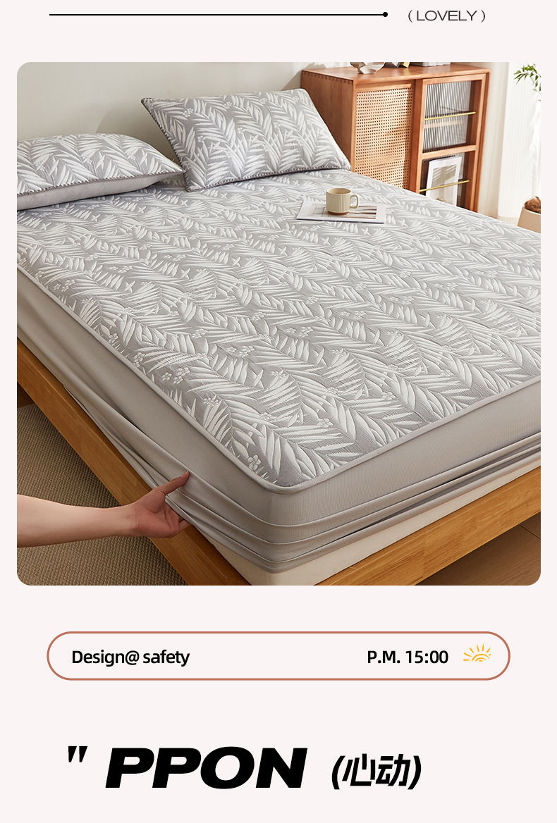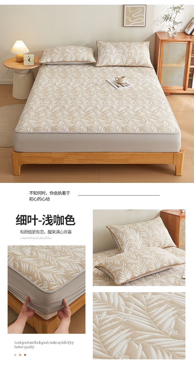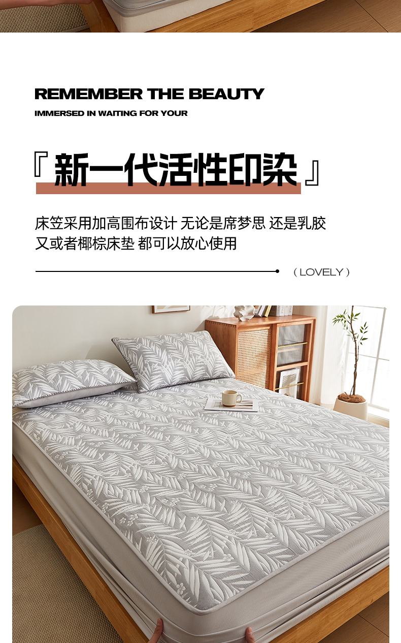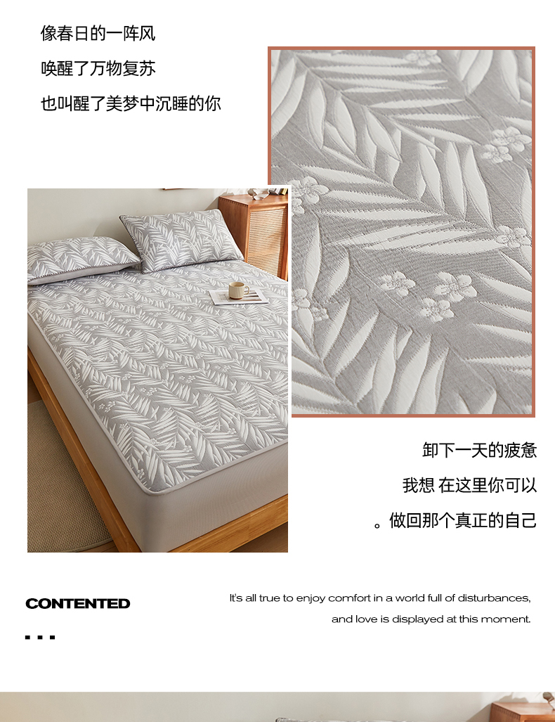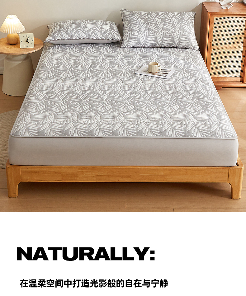 商品名称:梦镜家纺 2025新款A类针织双层纱床笠 细叶-雅致灰