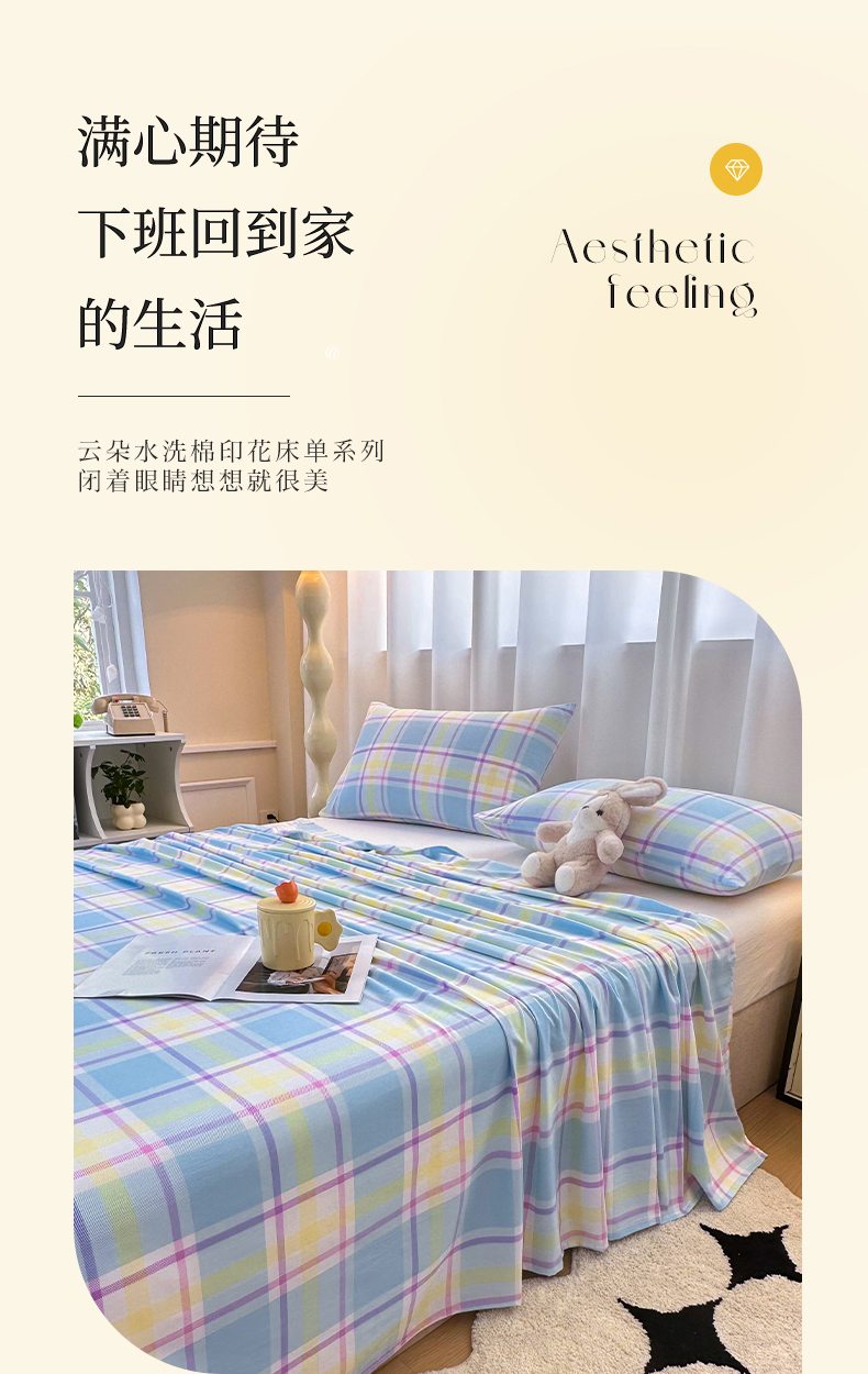 • 91家纺网 家纺一手货源 找家纺 雨彤家纺 2025新款A类母婴级软糯糯云朵水洗棉床单 弗罗格