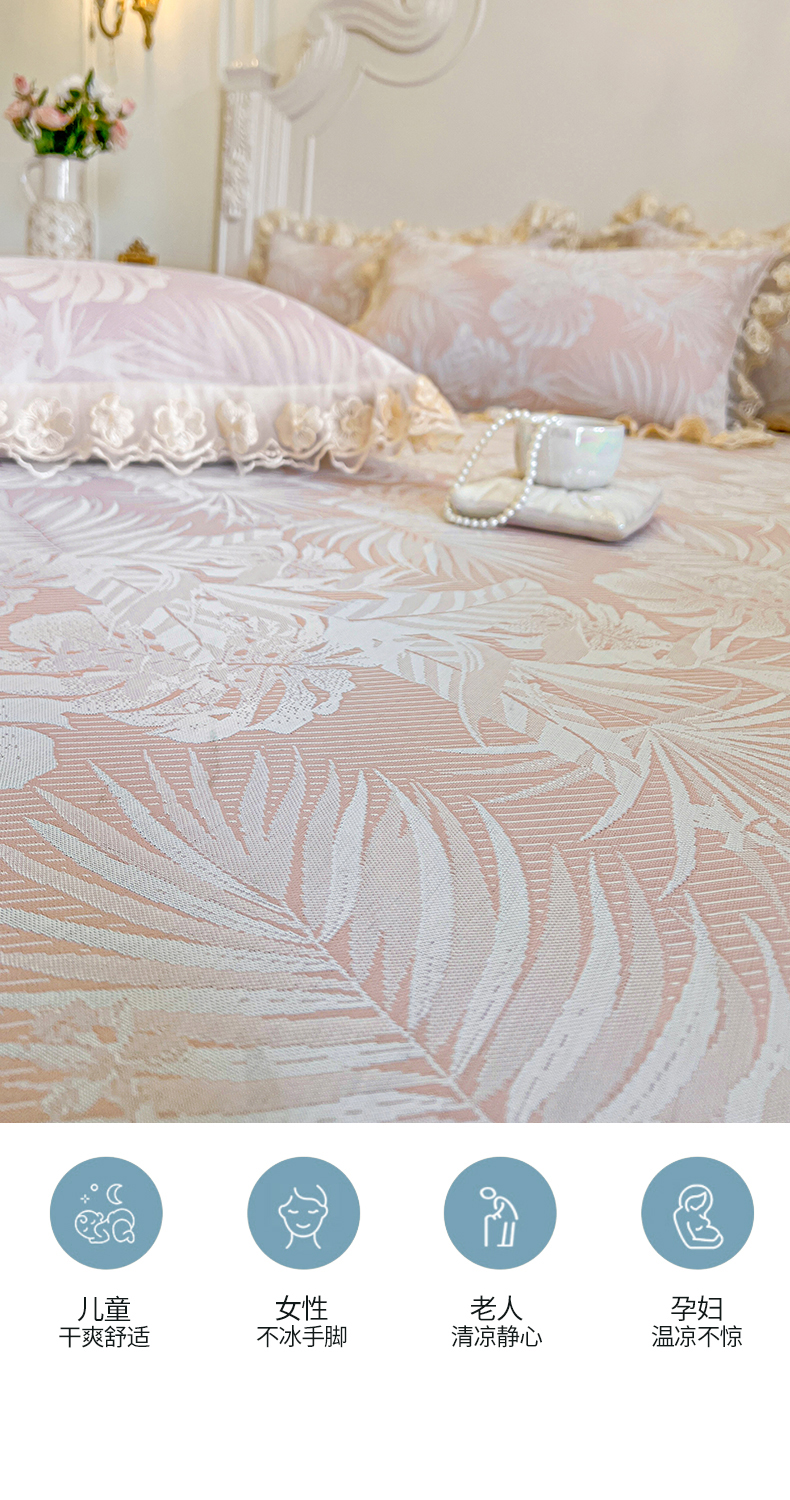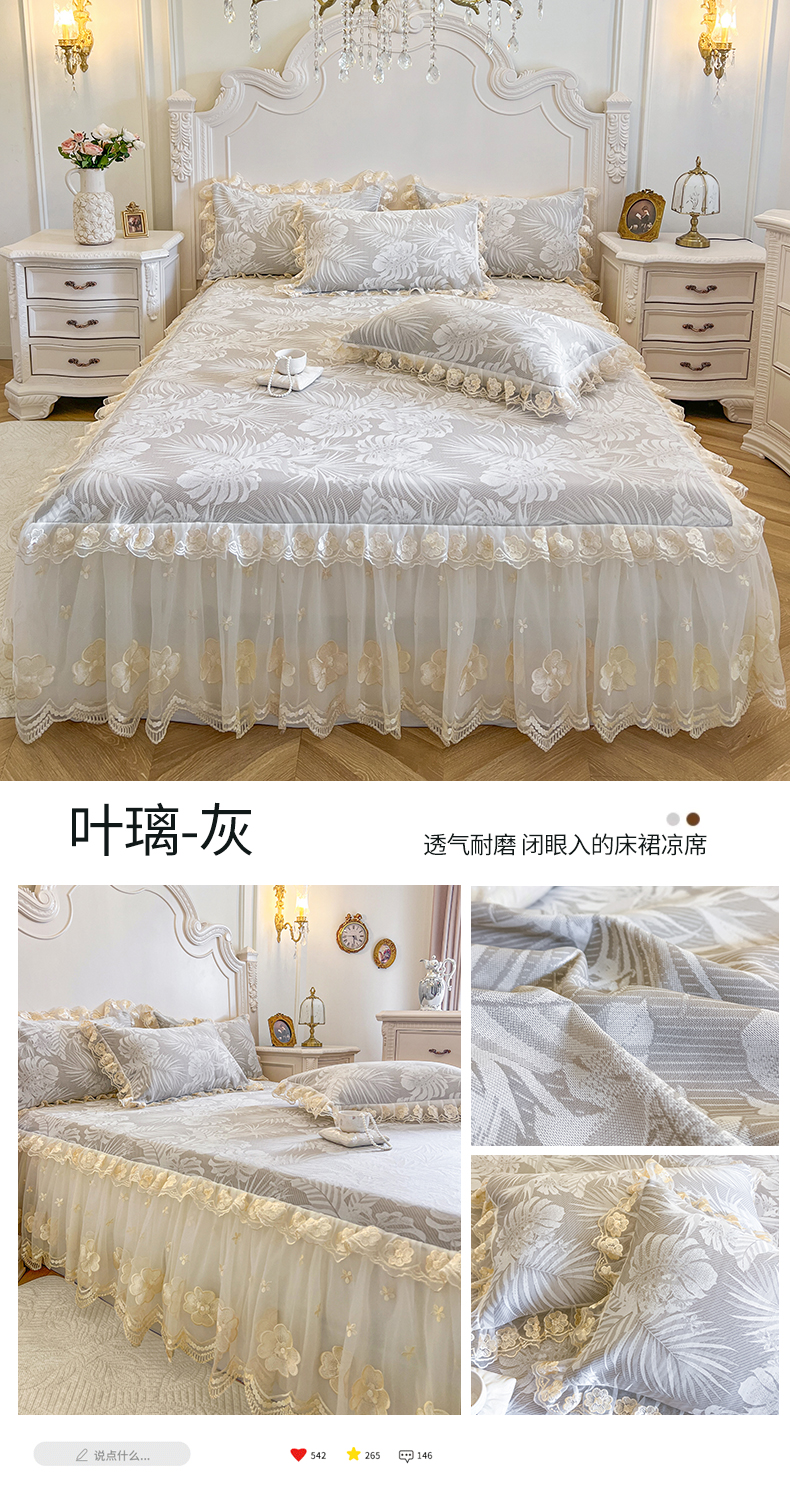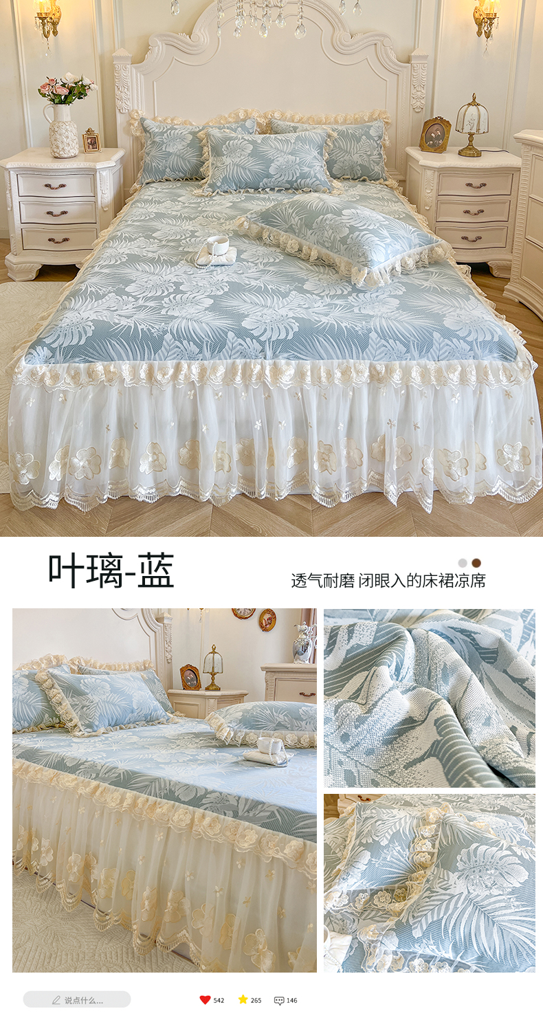 商品名称:网红馆(ck家纺) 2025新款提花冰丝席床裙款凉席席子三件套-叶璃 叶璃-蓝