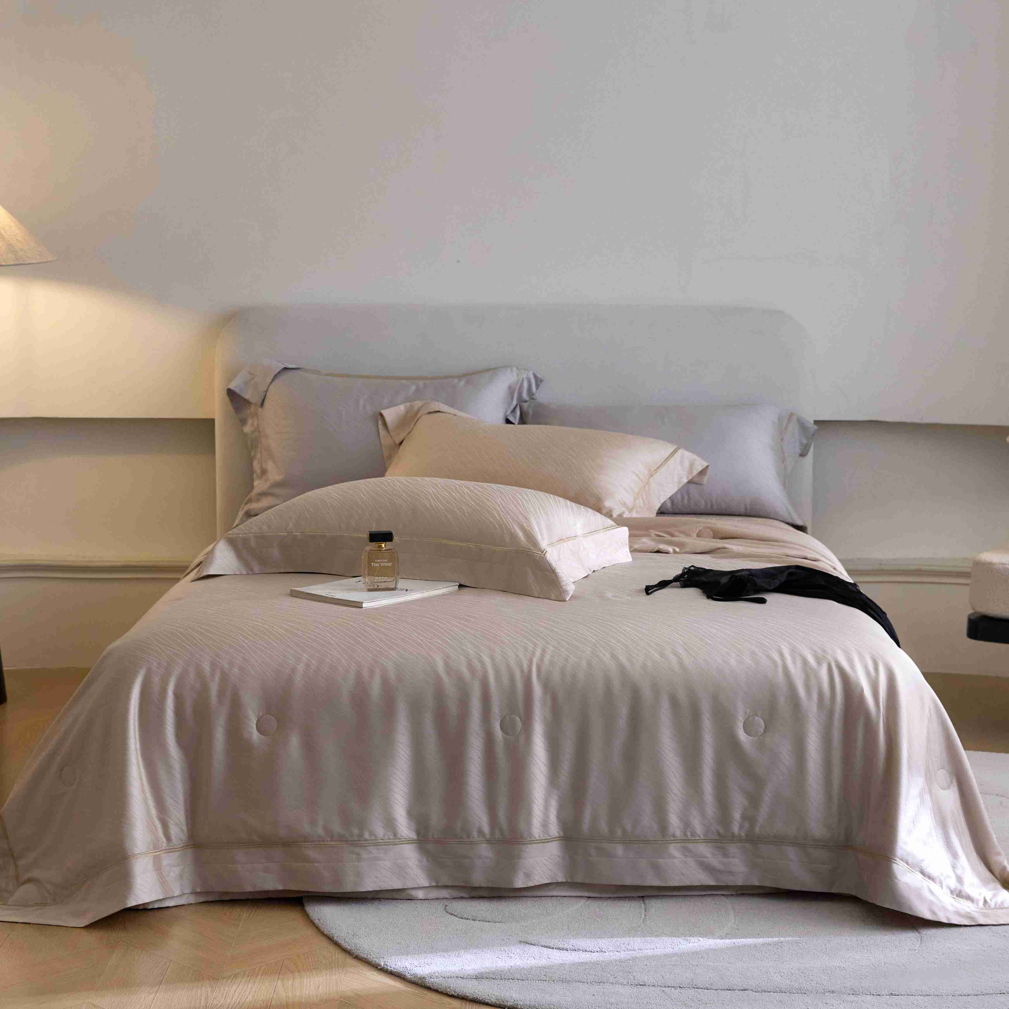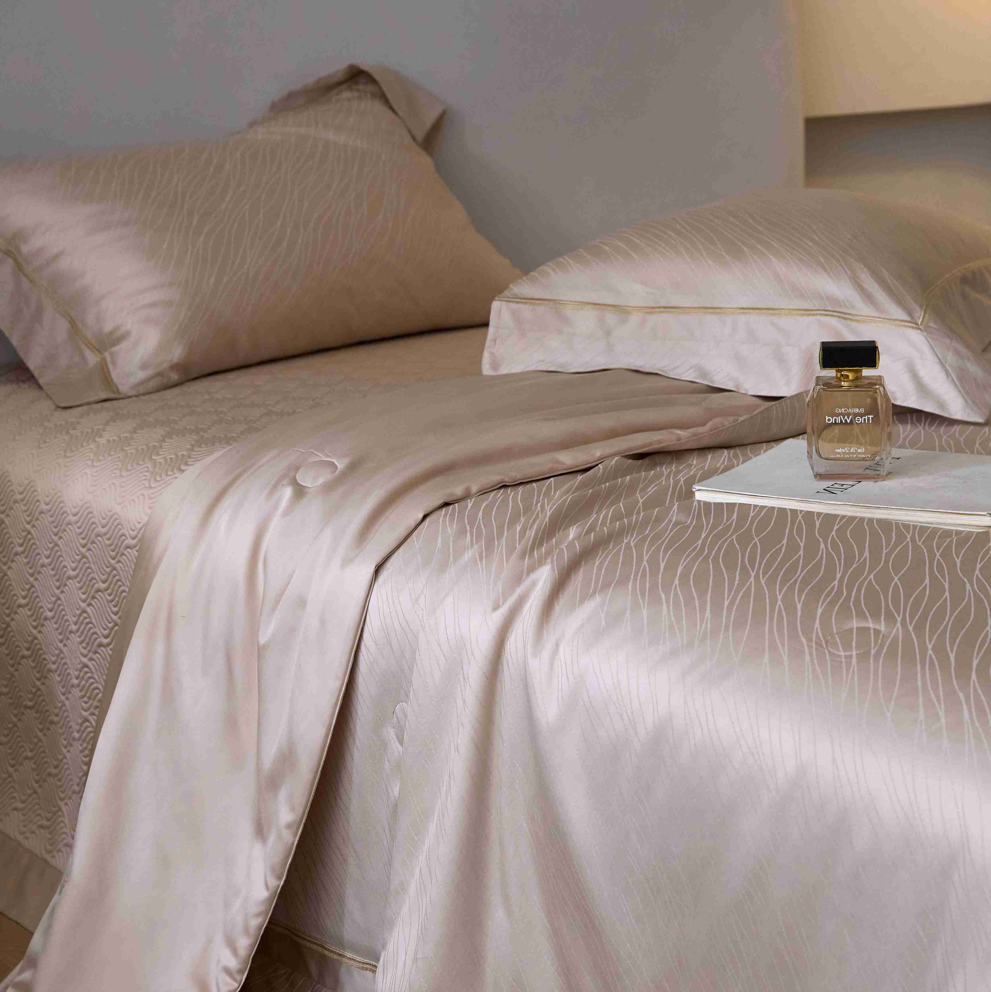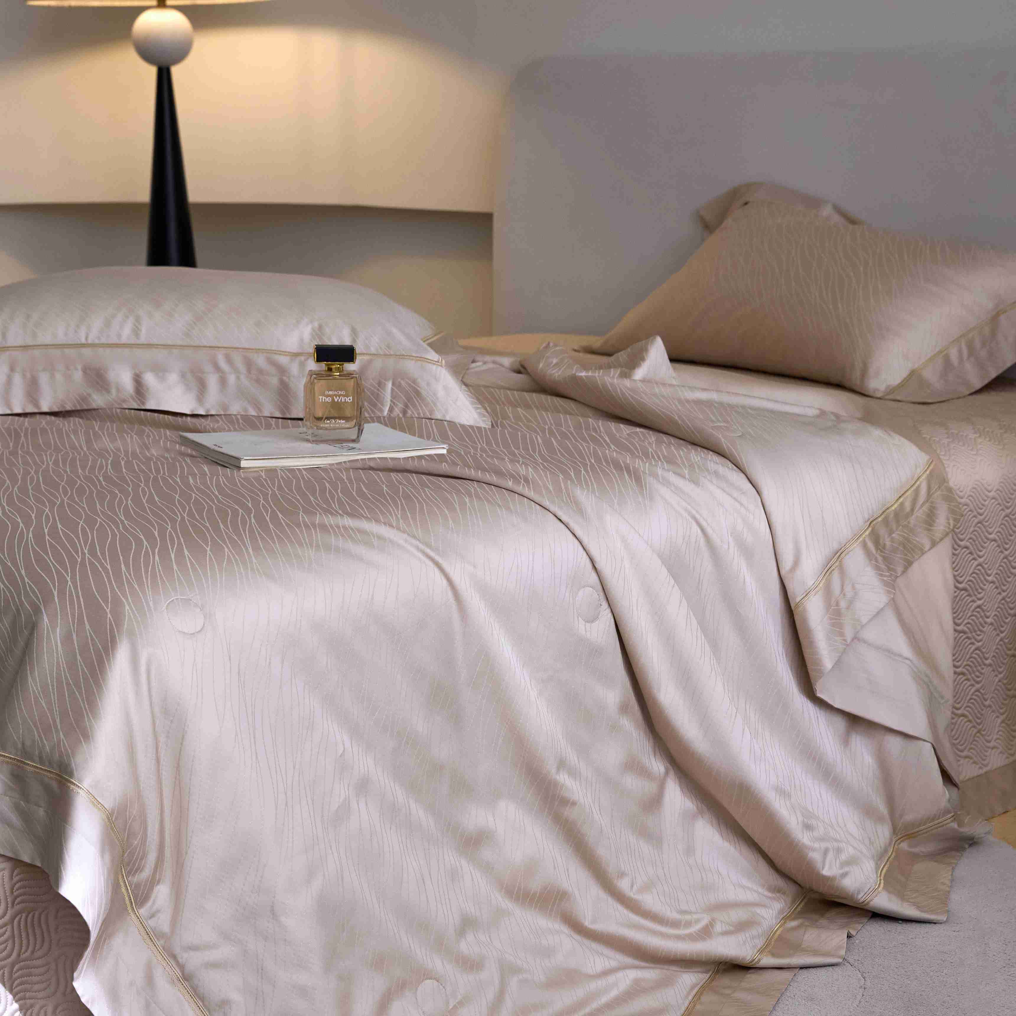 时亿家居 2025新款100支天丝棉提花床盖款夏被四件套【控价券后不低于 538】 莫妮卡 香槟