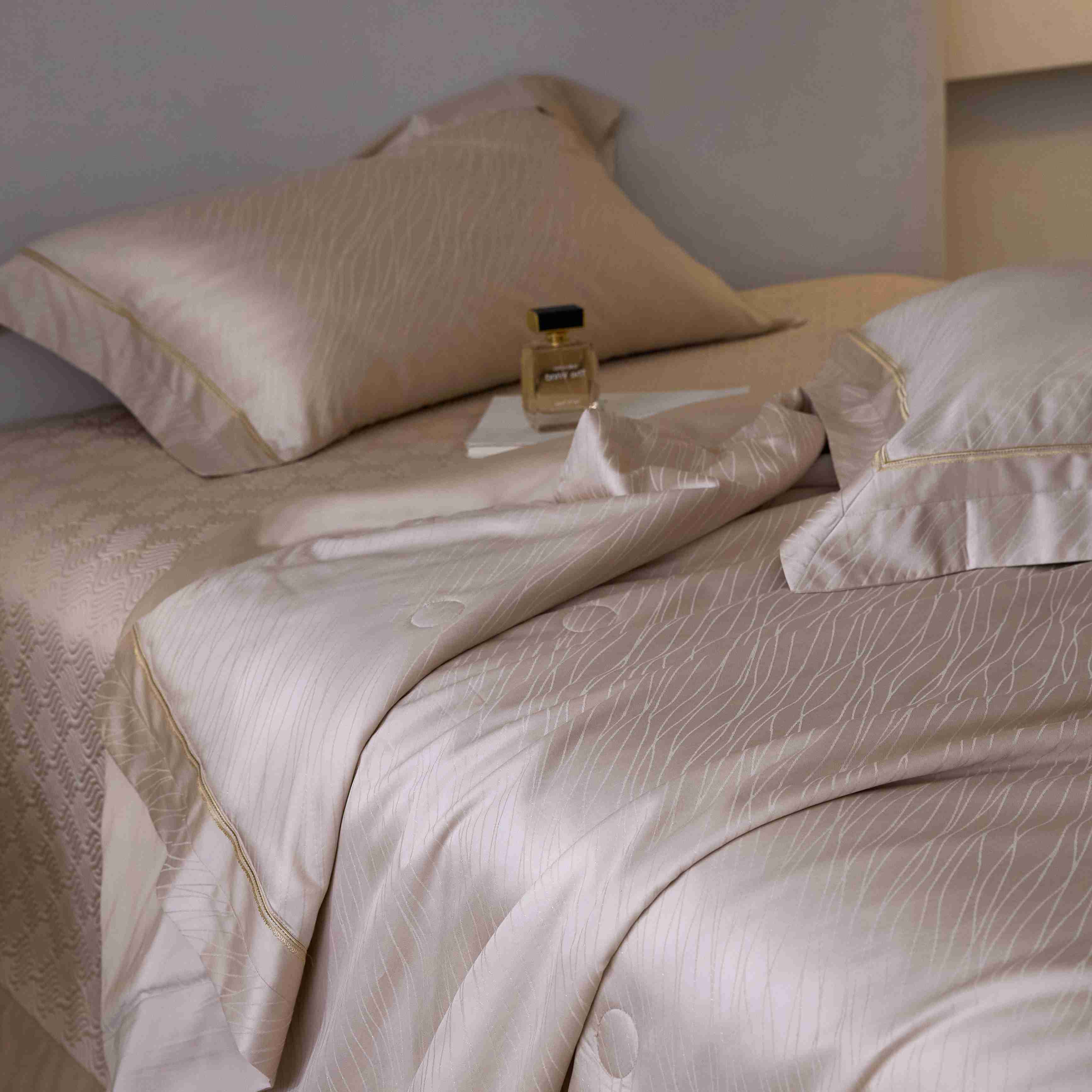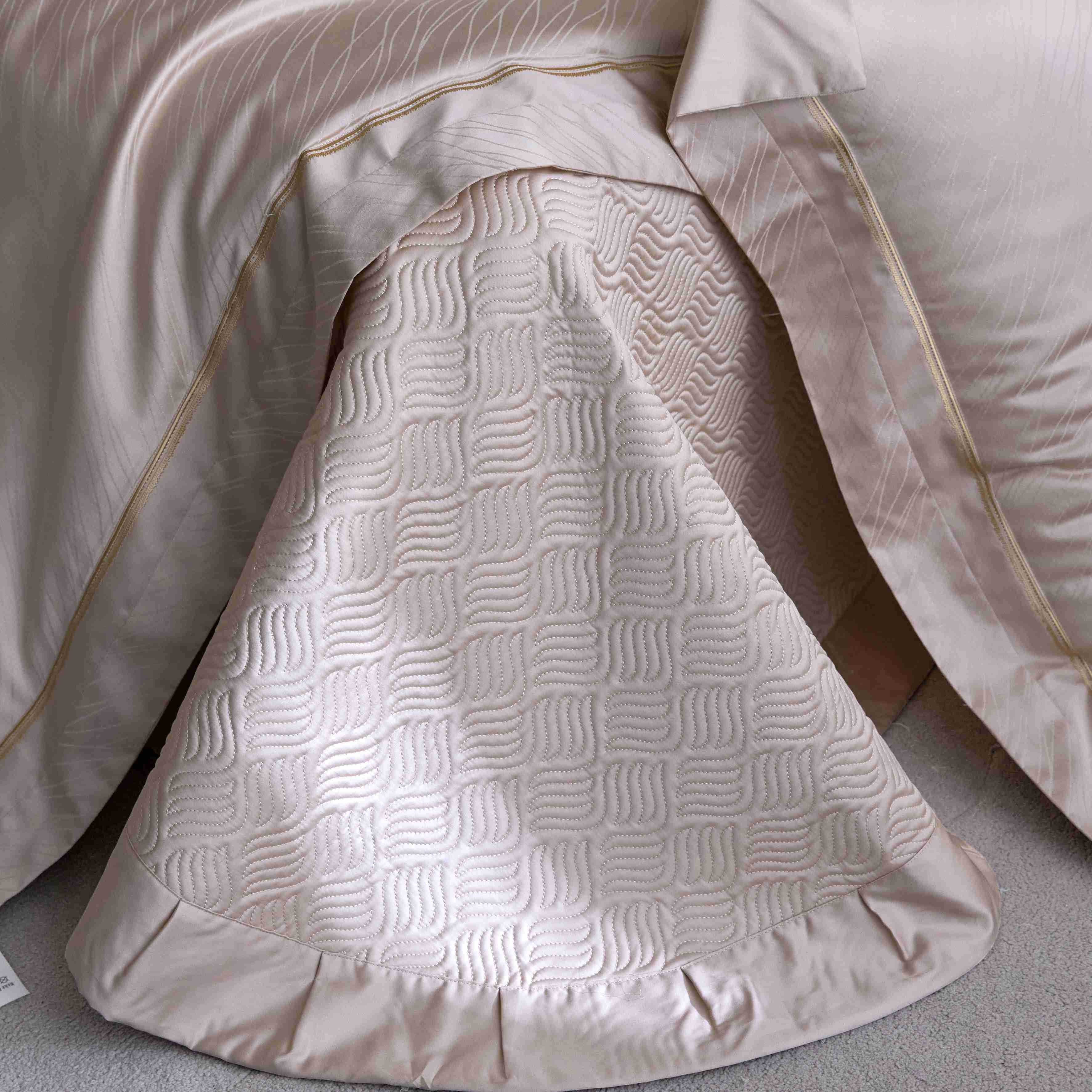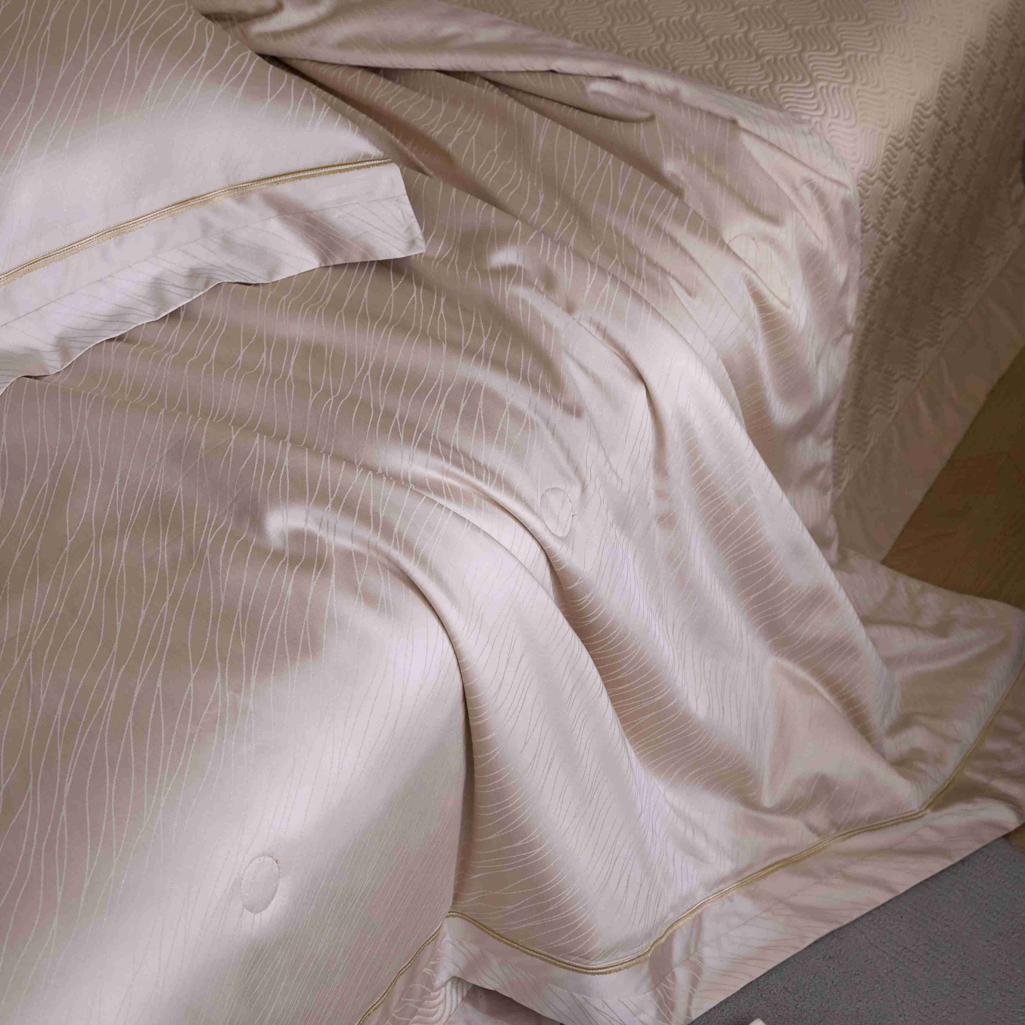 商品名称:时亿家居 2025新款100支天丝棉提花床盖款夏被四件套【控价券后不低于 538】 莫妮卡 香槟