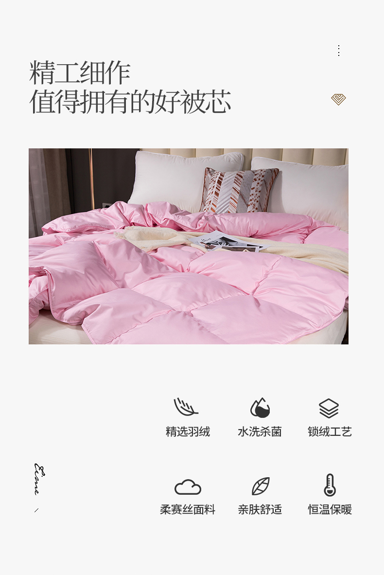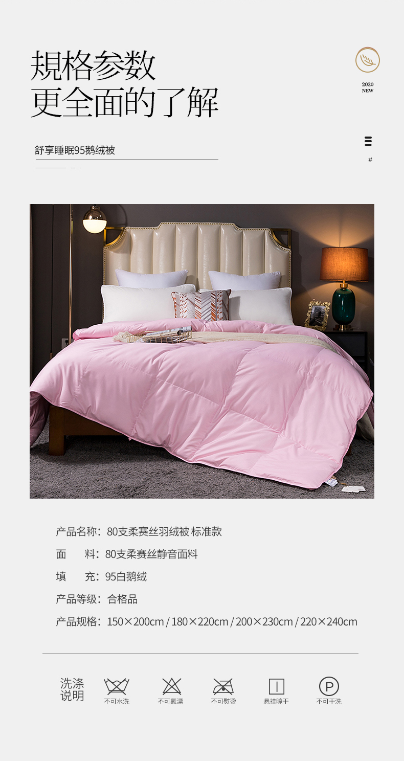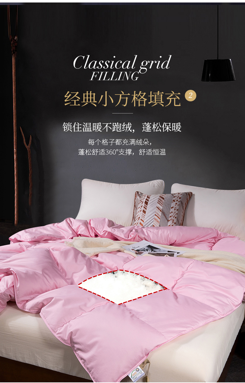 • 91家纺网 家纺一手货源 找家纺 呆头鹅羽绒工厂店 2025新款80支柔赛丝羽绒被-标准款 白鹅绒鸭绒被子被芯羽绒工厂店 粉色