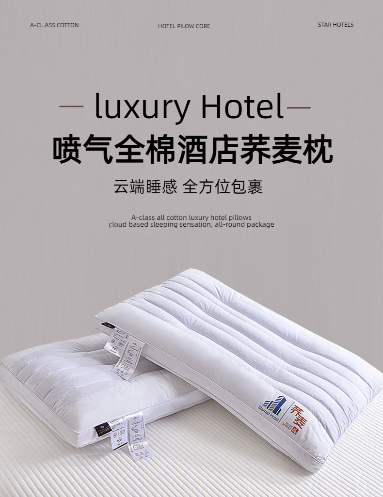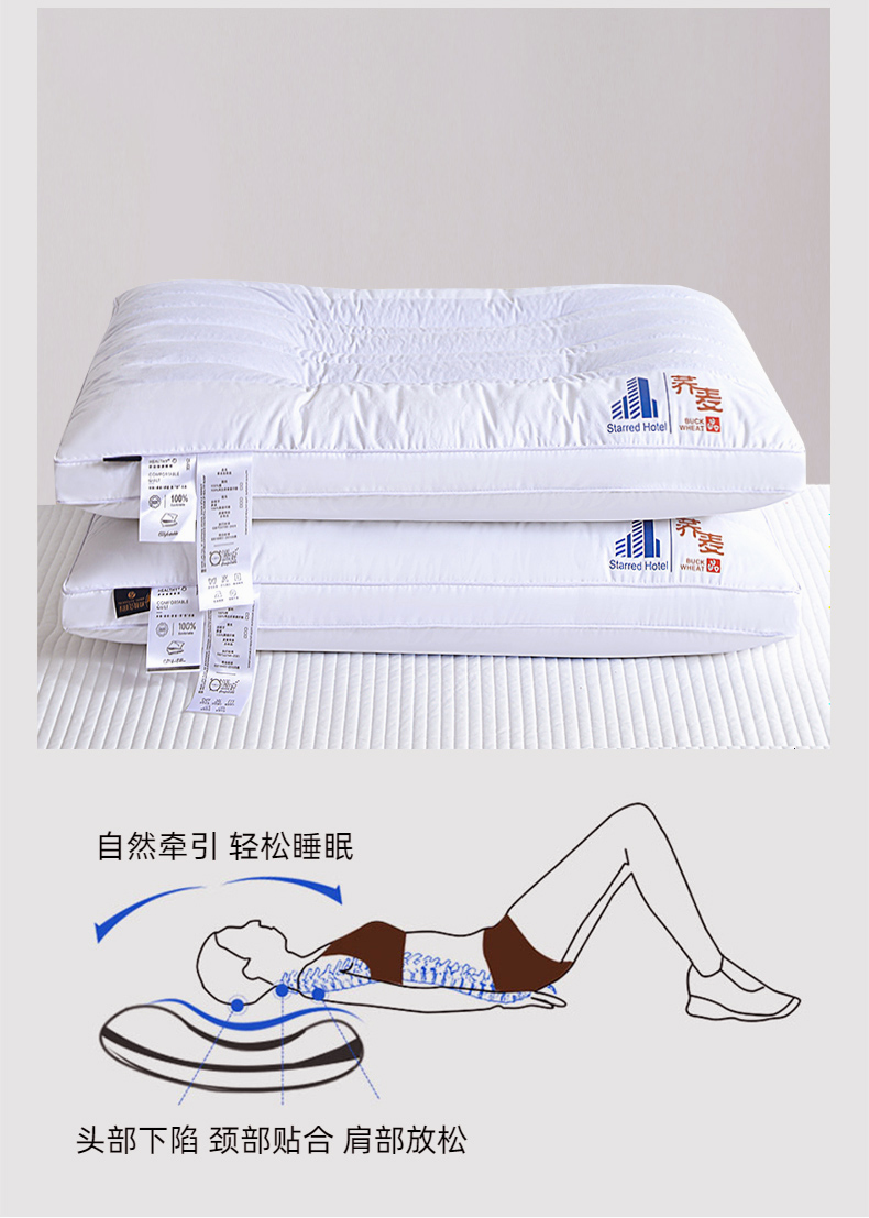全棉羽丝枕 护颈枕芯 全棉荞麦两用枕 全棉羽丝枕 全棉荞麦羽丝枕头